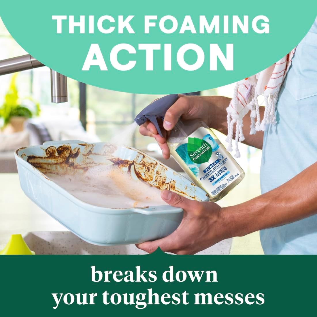 Seventh Generation Foaming Dish Spray, 3X Grease Fighters, Free & Clear, 16 Fl. Oz.
