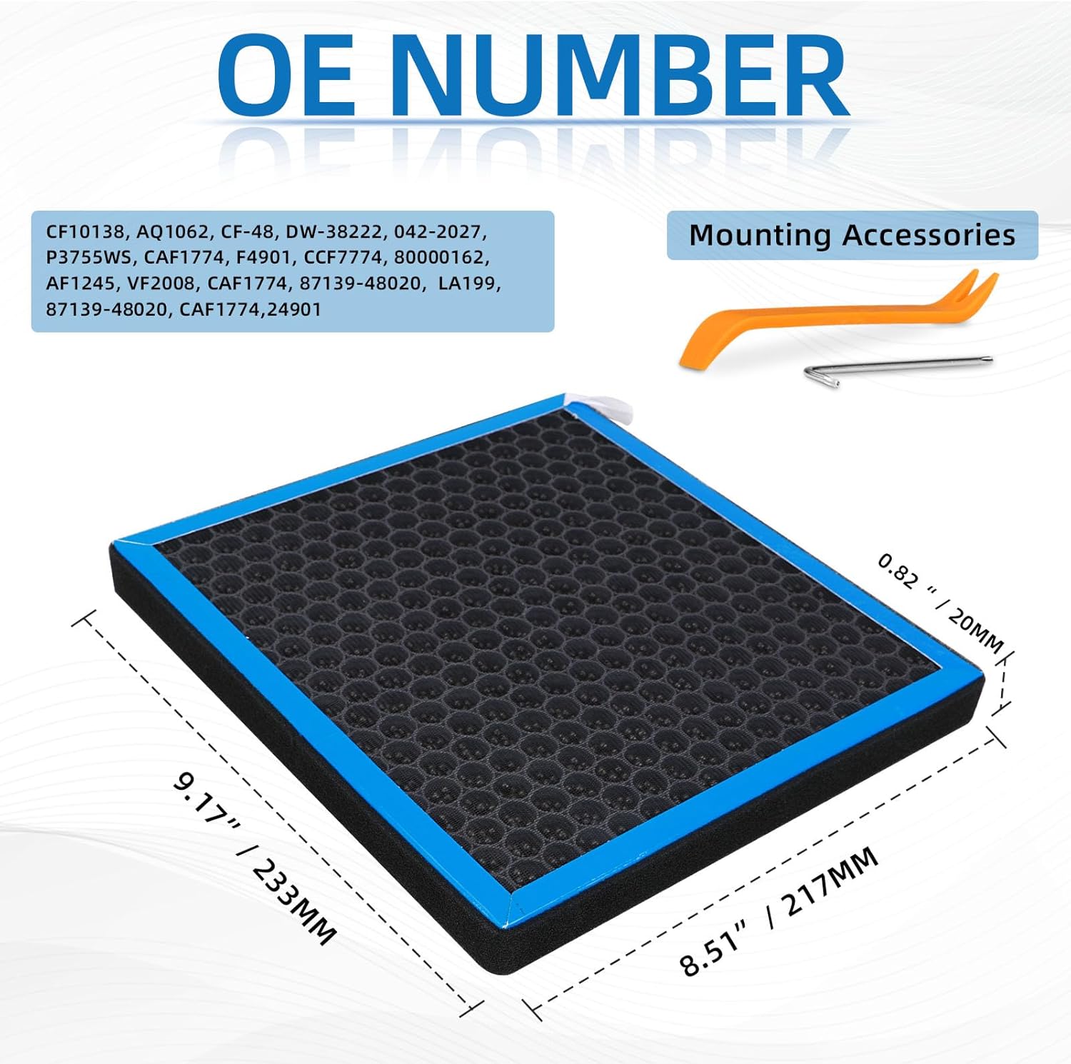 - Replacement Part Number: Replace CF10138, AQ1062, CF-48, 042-2027, P3755WS, CAF1774, CCF7774, 80000162, DW-38222, F4901, AF1245, VF2008, CAF1774, 87139-48020, CAF1774, LA199, 87139-48020, 24901.Before purchasing, please carefully check the brand, model, and year of your vehicle to ensure compatibility.