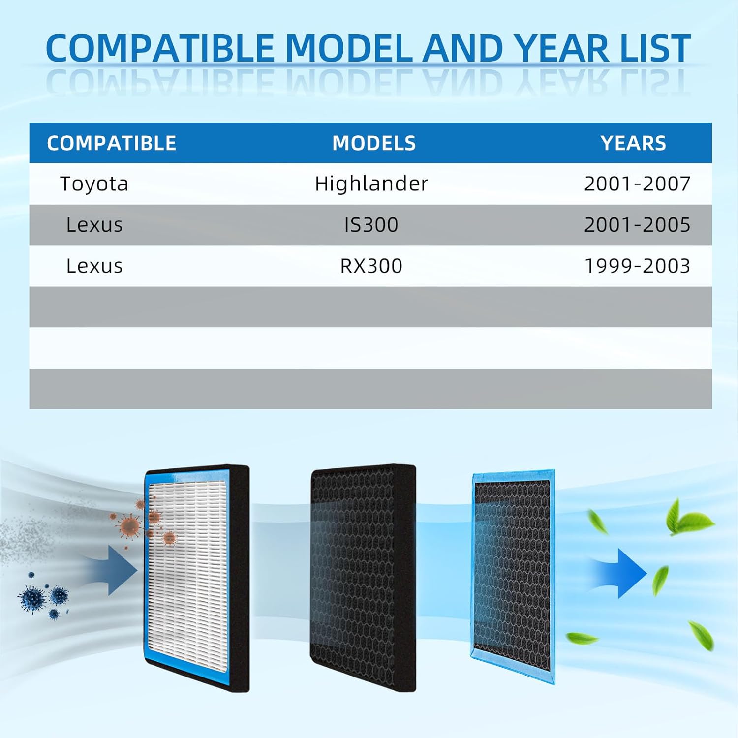 HEPA Cabin Air Filter With Activated Carbon Replacement CF10138 Compatible with Toyota Highlander 2001-2007,Lexus IS300 2001-2005 ,RX300 1999-2003.