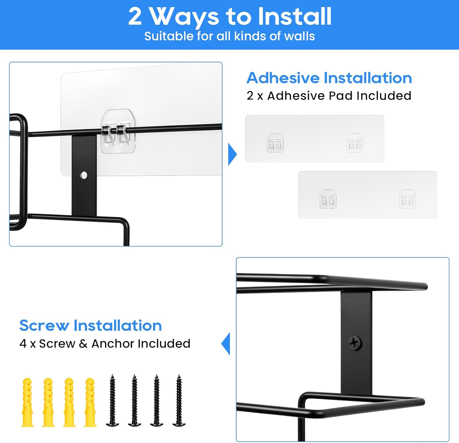 • 【Two Installation Methods】Comes with all mounting hardware, the glove rack can be mounted on the wall or cabinet door by adhesive hooks or screws, allowing you to choose the installation method according to the wall.