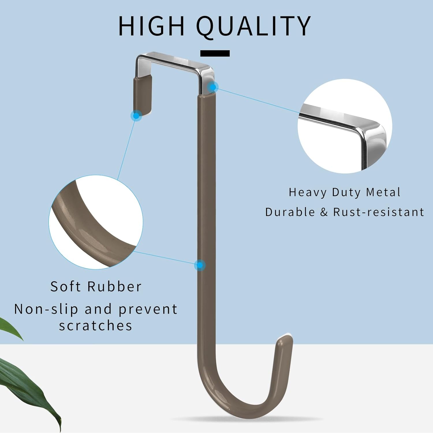 FYY Over The Door Hooks, 4 Pack Upgraded Long Door Hangers Hooks with Rubber Prevent Scratches Heavy Duty Organizer Hooks for Hanging Clothes, Towels, Hats, Coats, Bags Brown