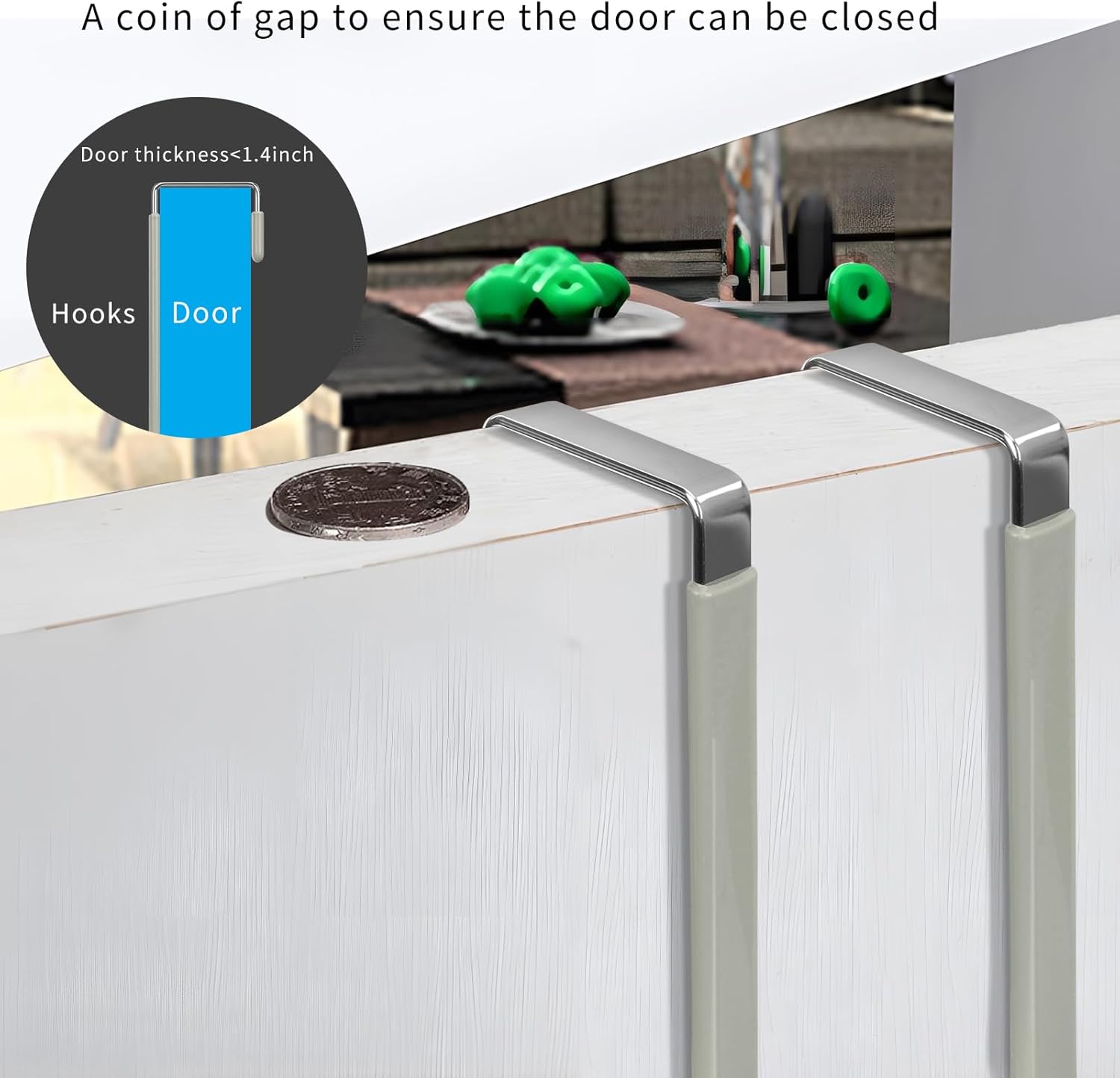 • Soft Rubber: The door organizer hooks are built with soft rubber, non-slip and smooth surface keep the hooks in place without swinging and protect the doors or clothing from scratch
