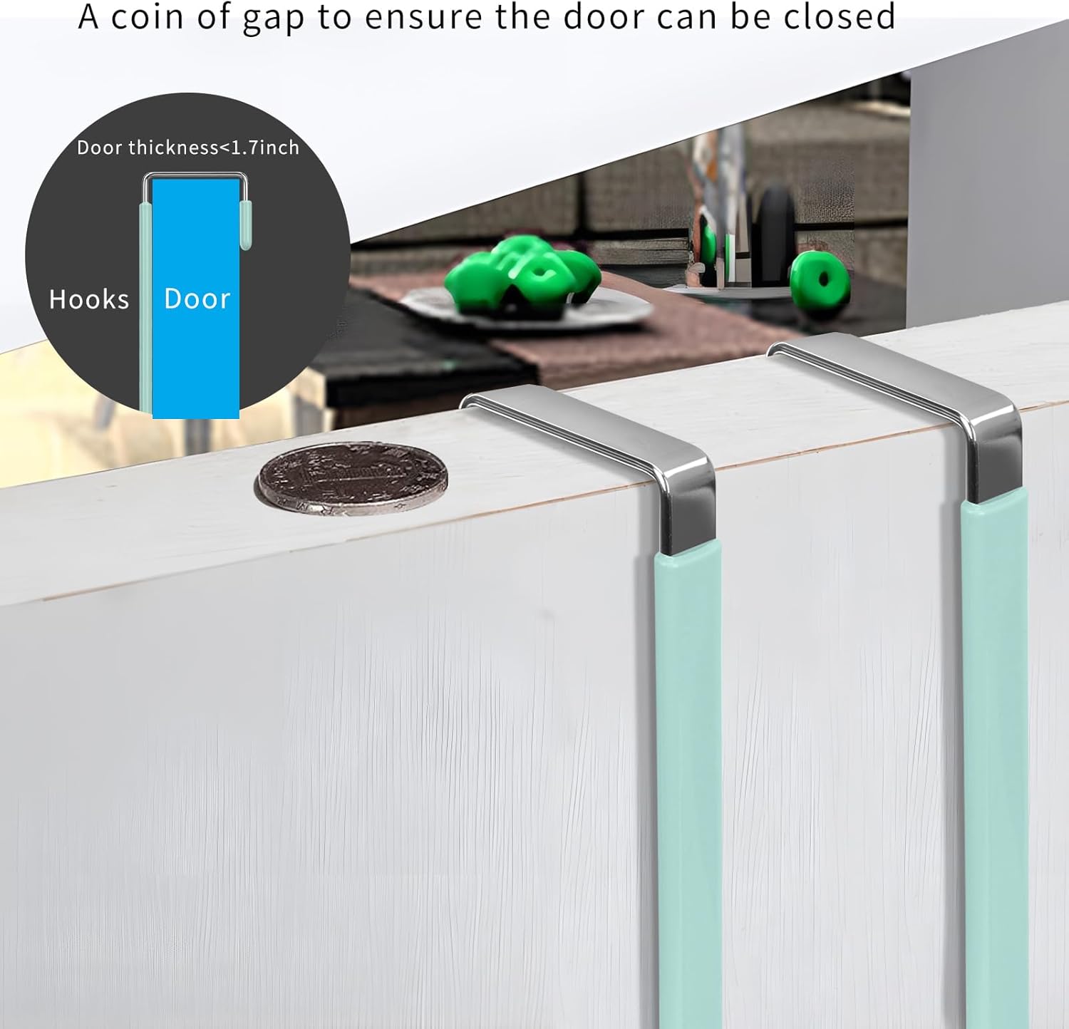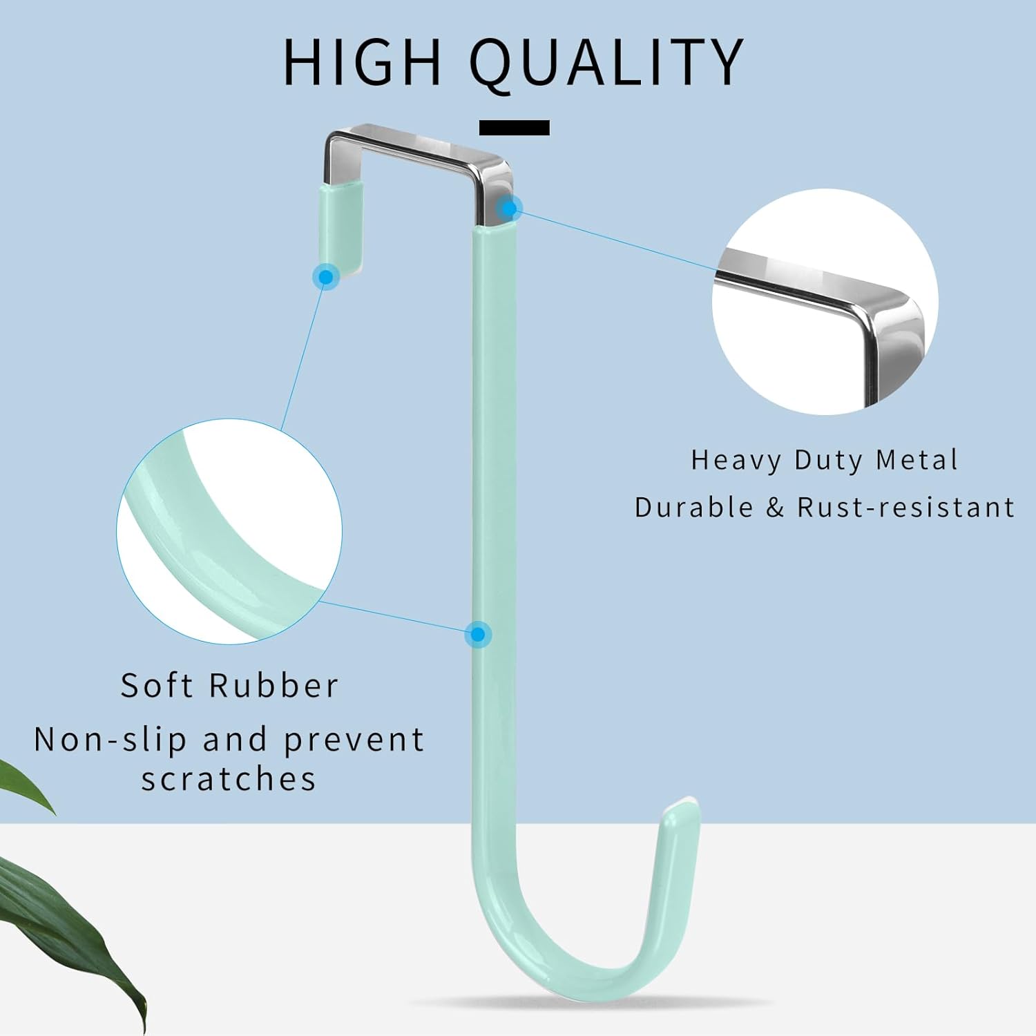 FYY Over The Door Hooks, 4 Pack Upgraded Long Door Hangers Hooks with Rubber Prevent Scratches Heavy Duty Organizer Hooks for Hanging Clothes, Towels, Hats, Coats, Bags LightGreen