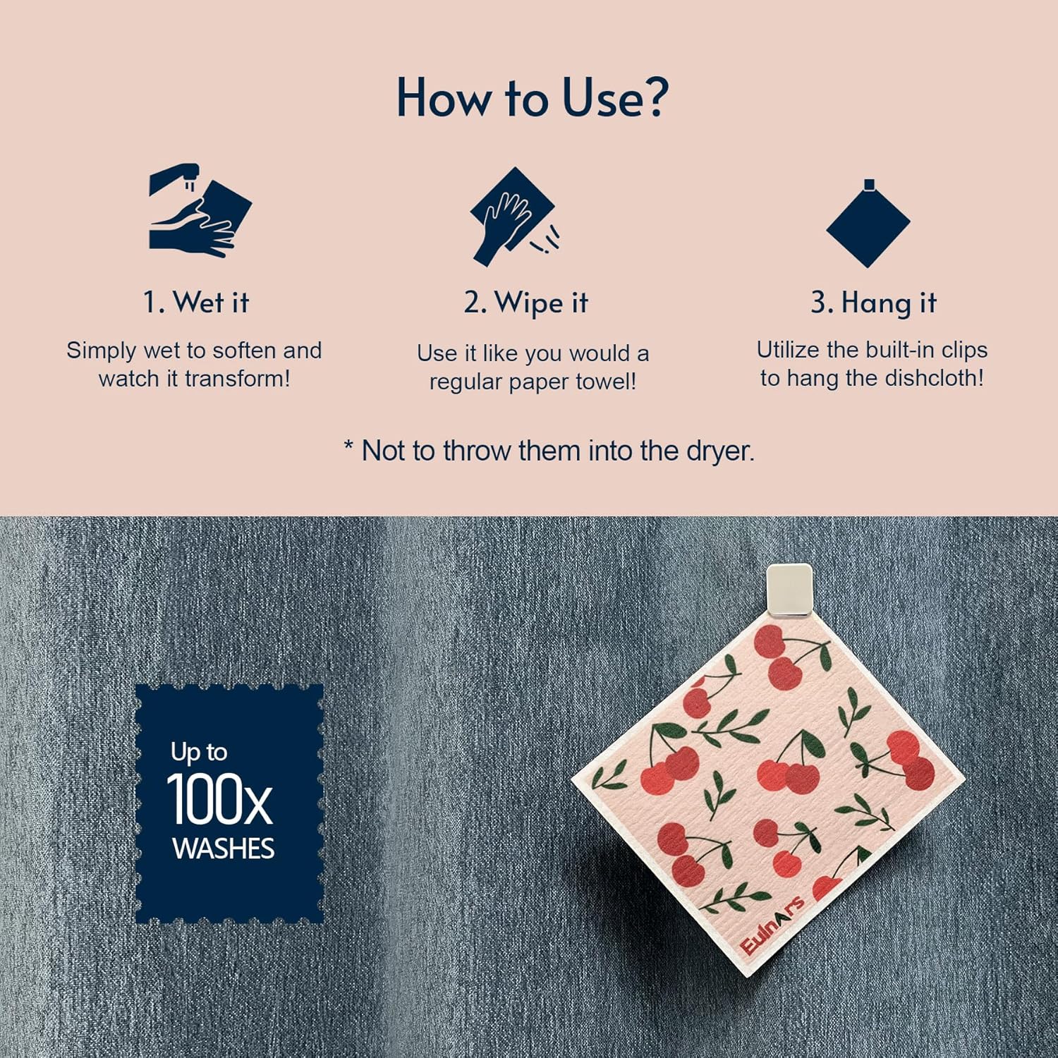 • Washable and Resuable: Tested to be reusable up to 200 times, our swedish dish cloths for washing dishes can replace up to 17 rolls of paper towels. Affordable, durable, and easy to care for, they offer a long-lasting alternative to disposable paper towels
