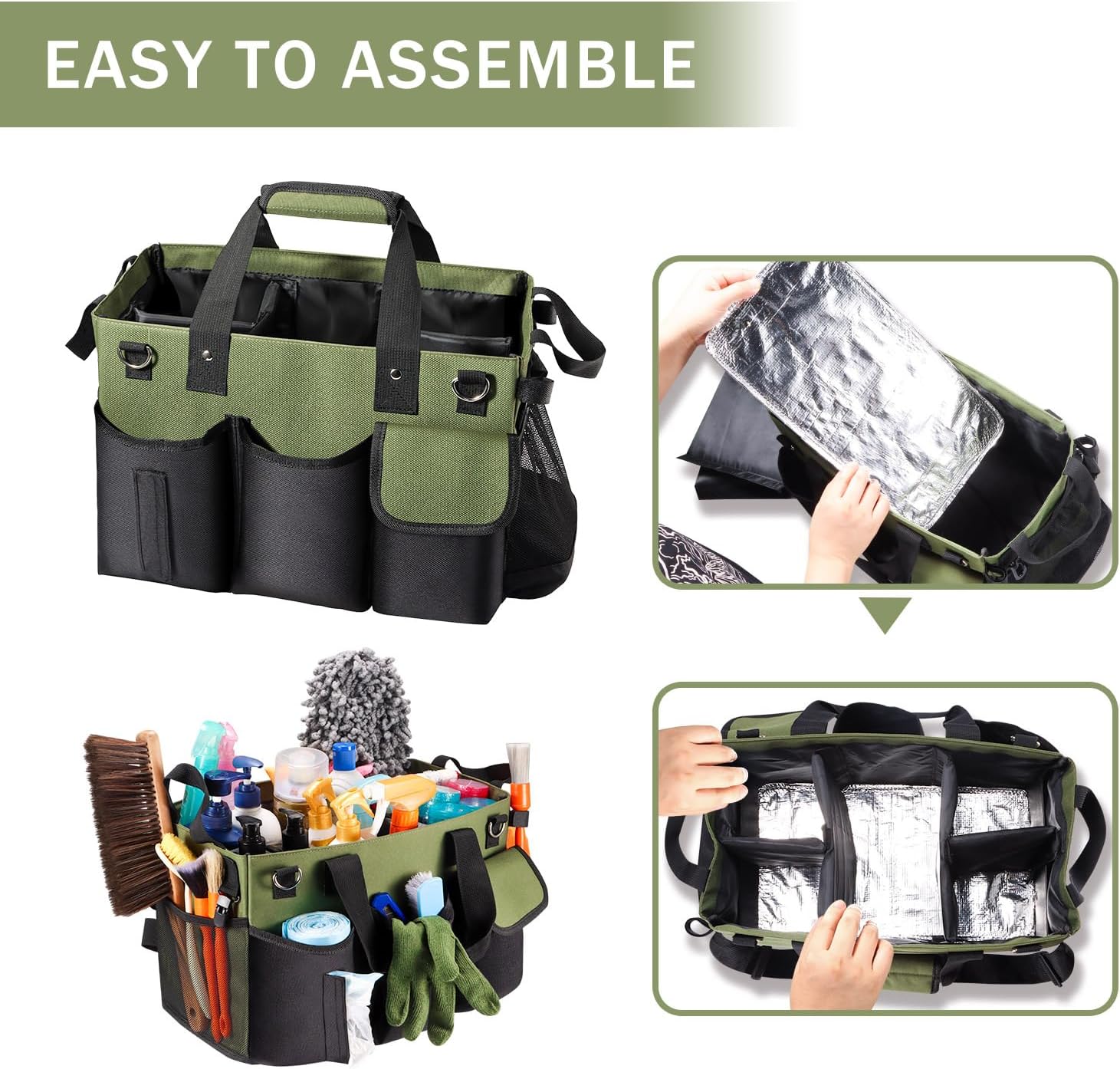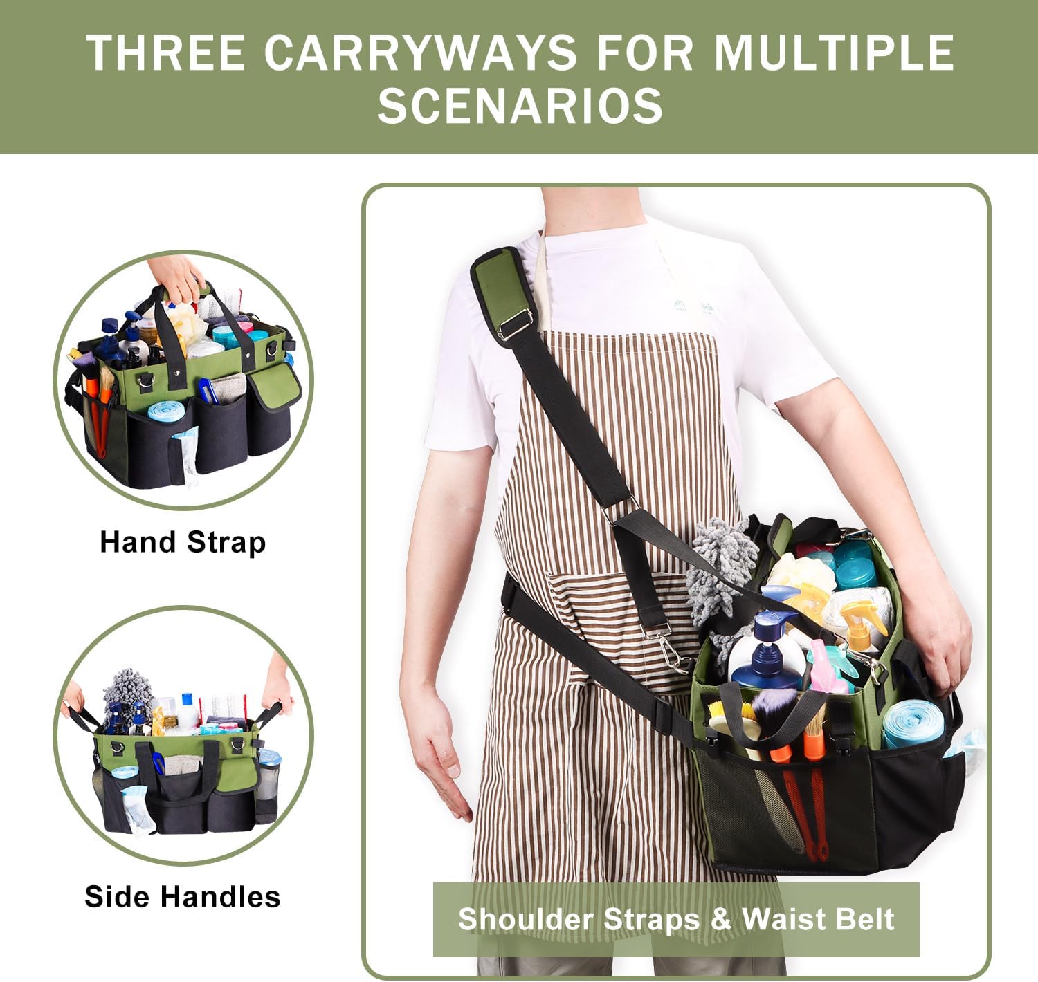 - 【Making Cleaning Work More Efficient and Wide Application】With the large Capacity with Multiple Pockets and the 3 modes of carrying, you can carry all tools at the same time so you have everything you need at arm's reach to make your housekeeping business more convenient! It also can be used as a storage organizer for car washing, garden cleaning, painting, repair equipment, picnic items, trunk storage, and more.
