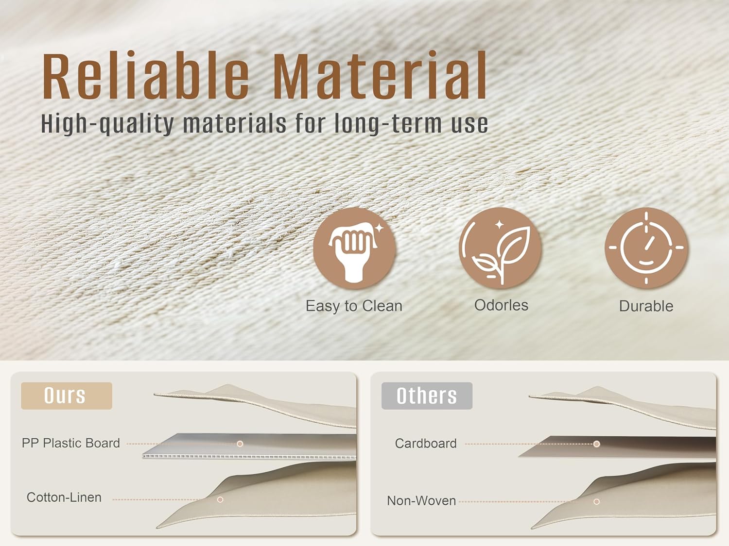 • NATURAL FABRIC: Our fabric storage bins are made of natural cotton linen fabric, offering a green and sustainable solution for your closet organization needs. They are washable and odorless, ensuring a healthy and clean environment.