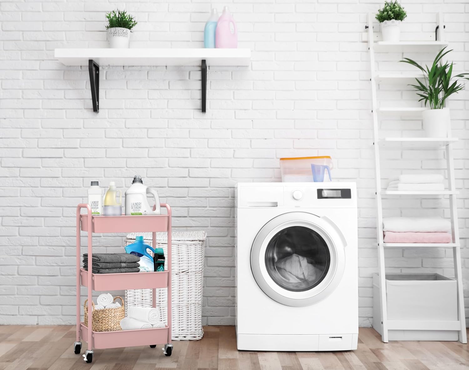 CAXXA 3-Tier Rolling Metal Storage Organizer - Mobile Utility Cart with Caster Wheels, Pink