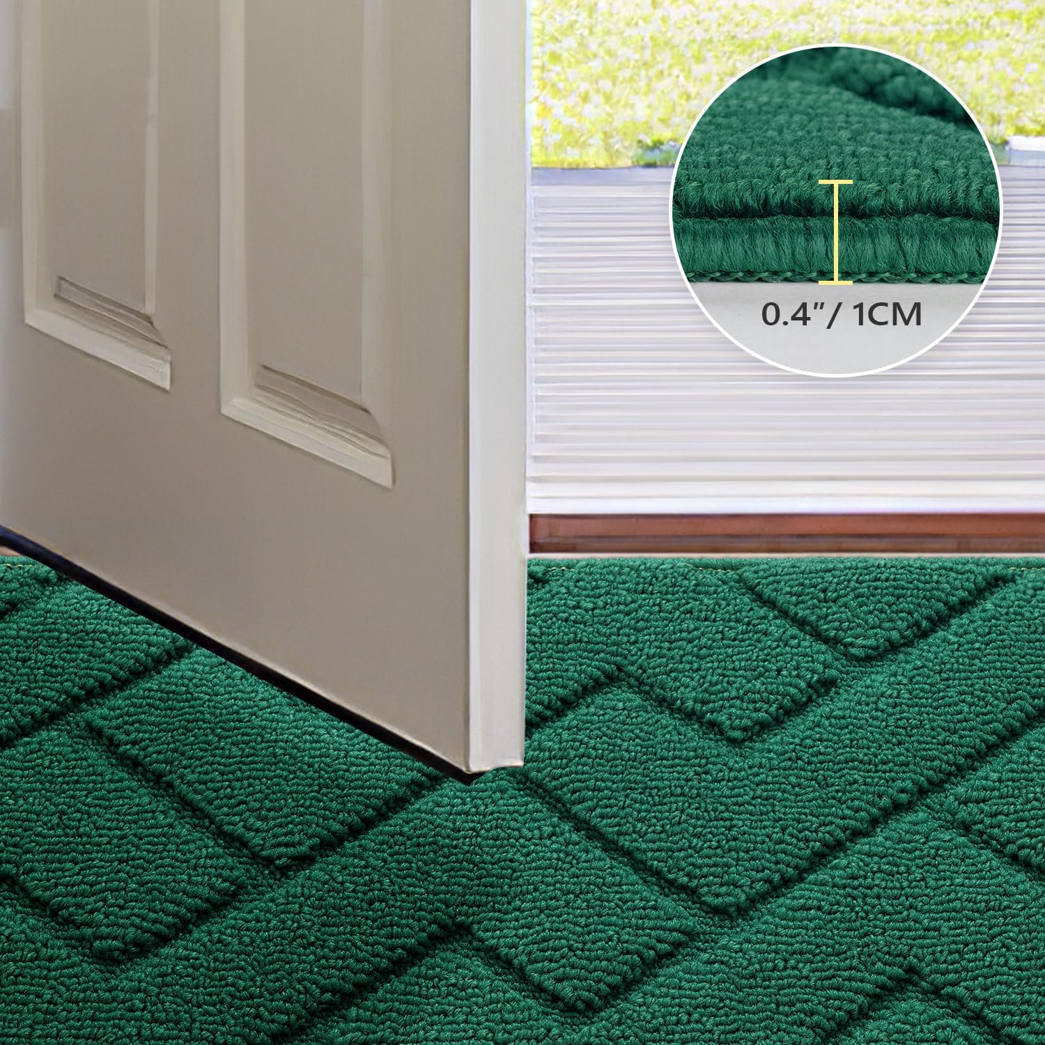 hicorfe Front Door Mat Outside Entrance,20"x31.5" Absorbent Muddy Dirt Resist Welcome Door Mats Outdoor Indoor,Stain and Fade Resistant,Non Slip Backing Entry Mat Doormat for Entryway(Evergreen)