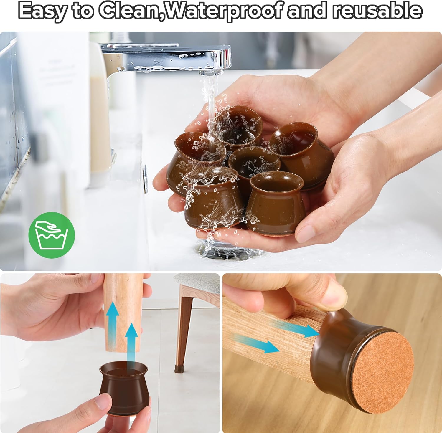 24PCS Upgraded Silicone Chair Leg Floor Protectors for Hardwood Floors, Furniture Sliders for Chair Legs, Felt Bottom Furniture Pads, Anti-Slip Round&Square Cap Covers to Scratch and Reduce Noise