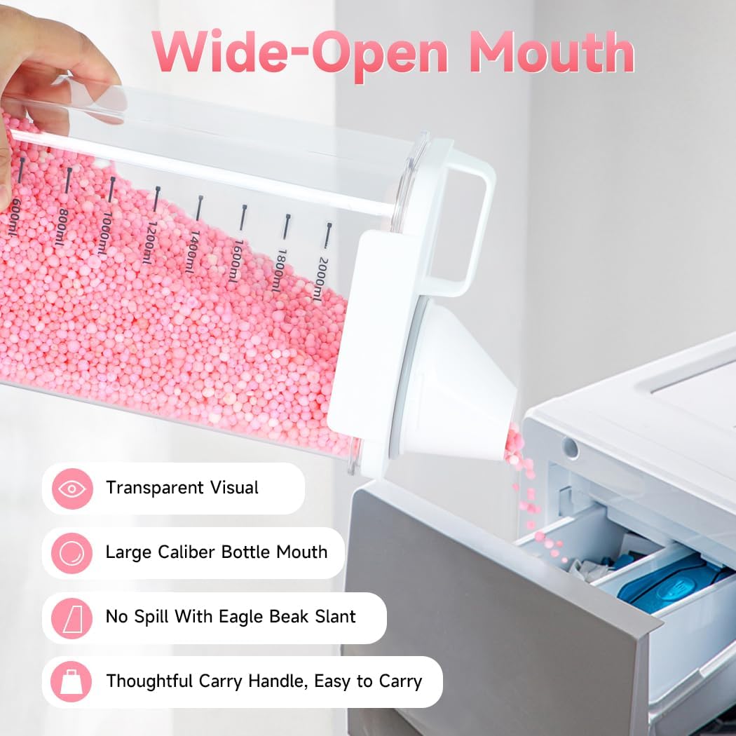 • Wide-open mouth: This laundry detergent dispenser has a hawkbill slanted spout is easy to pour and not easy to spill, and the thoughtful carrying handle is easy to hold