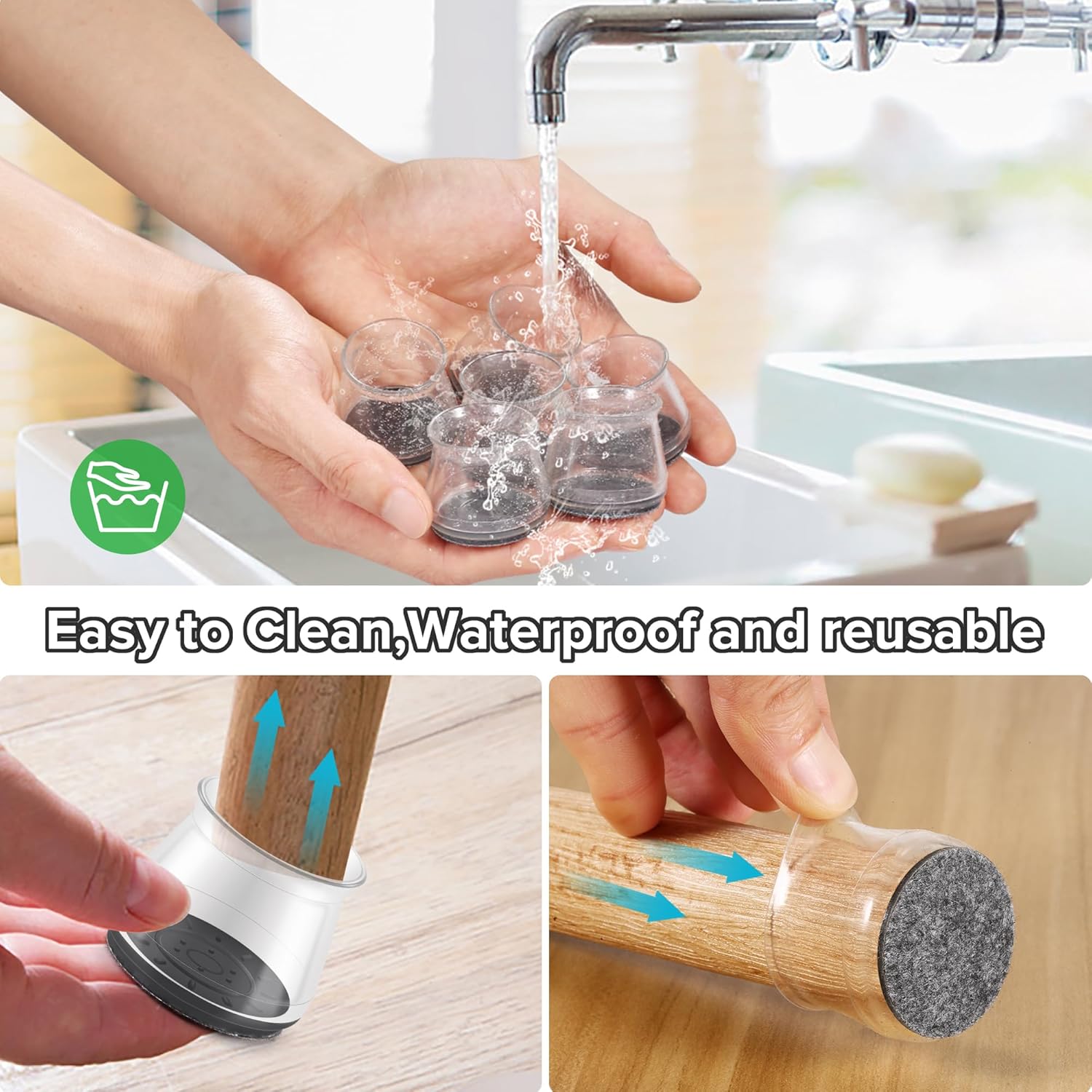 24PCS Upgraded Silicone Chair Leg Floor Protectors for Hardwood Floors, Furniture Sliders for Chair Legs, Felt Bottom Furniture Pads, Anti-Slip Round&Square Cap Covers to Scratch and Reduce Noise