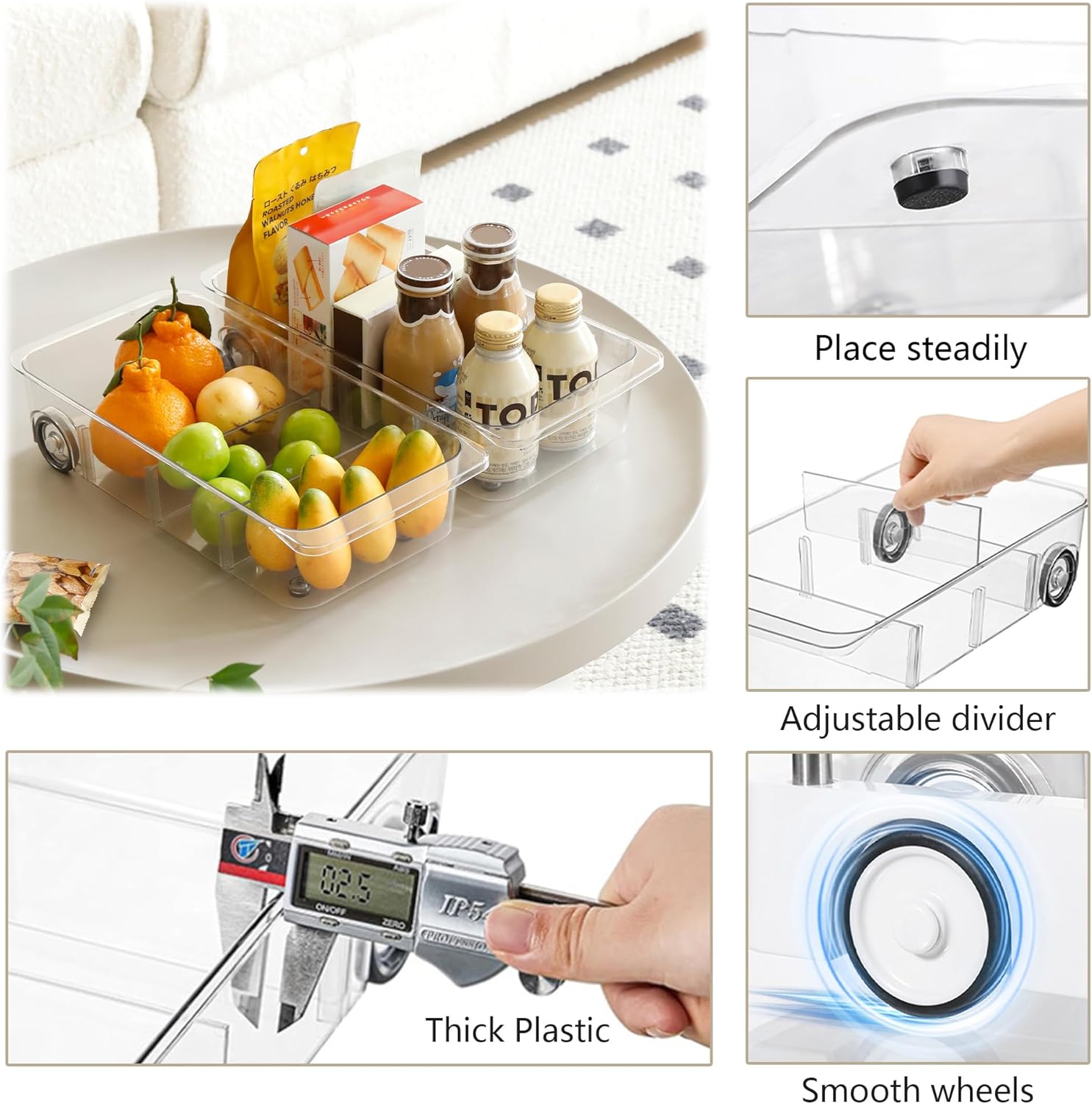 Fridge Organizer Bins With Wheels, 2 Pack Roll Out Refrigerator Organizers And Storage Refrigerator Drawer With Dividers, Upgrade Thick Plastic Pantry Storage Bins, Kitchen Organization