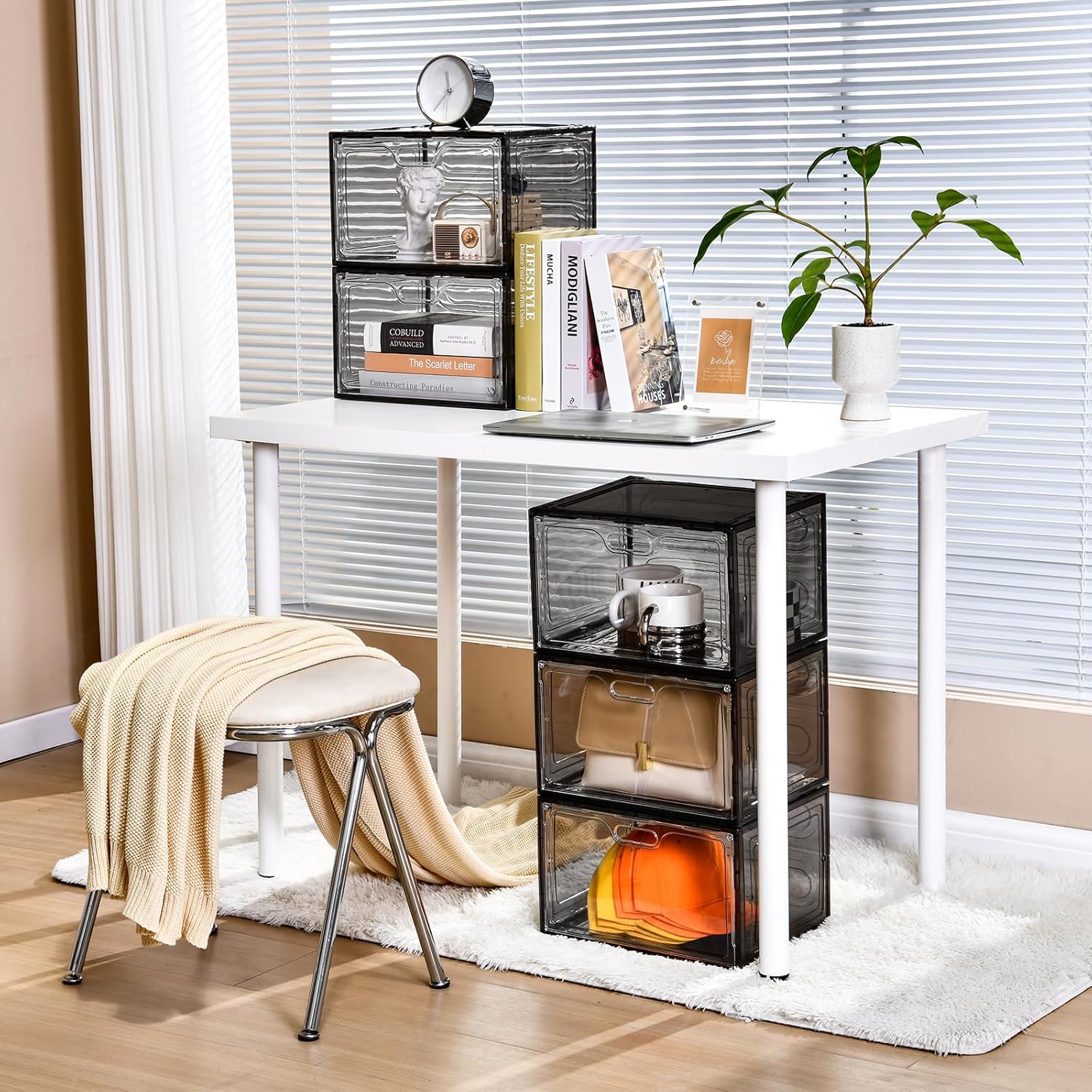 - [Sturdy Material] The shoe organizer is made of sturdy plastic. The stackable shoe boxes can effectively prevent dust from entering in.Easy daily care – clean with mild soap and water.