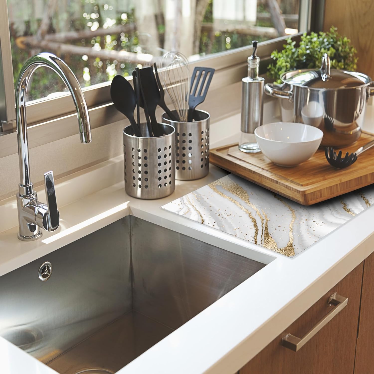 White Gold Marble Dish Drying Mats 18x24 Inch, Dish Pad Drying Rack Mat for Kitchen Counter Ultra Absorbent Microfiber Dishware Coffee Maker Bar Countertop Decor