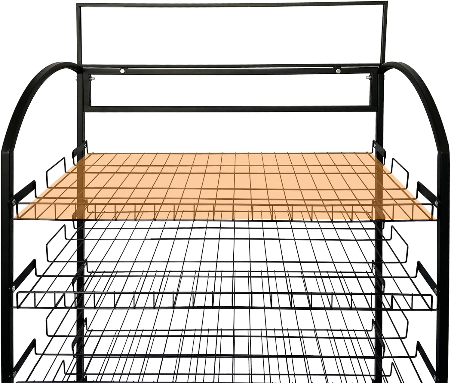 • Multi-functional Design: This bakery display rack features a width of 39.5 inches, making it suitable for showcasing a variety of snacks and chips. It has six spacious display shelves with a spacing of 7.2 inches between each tier. The shelves can be used in both tilted and flat positions, accommodating a large quantity of products to meet your display needs.
