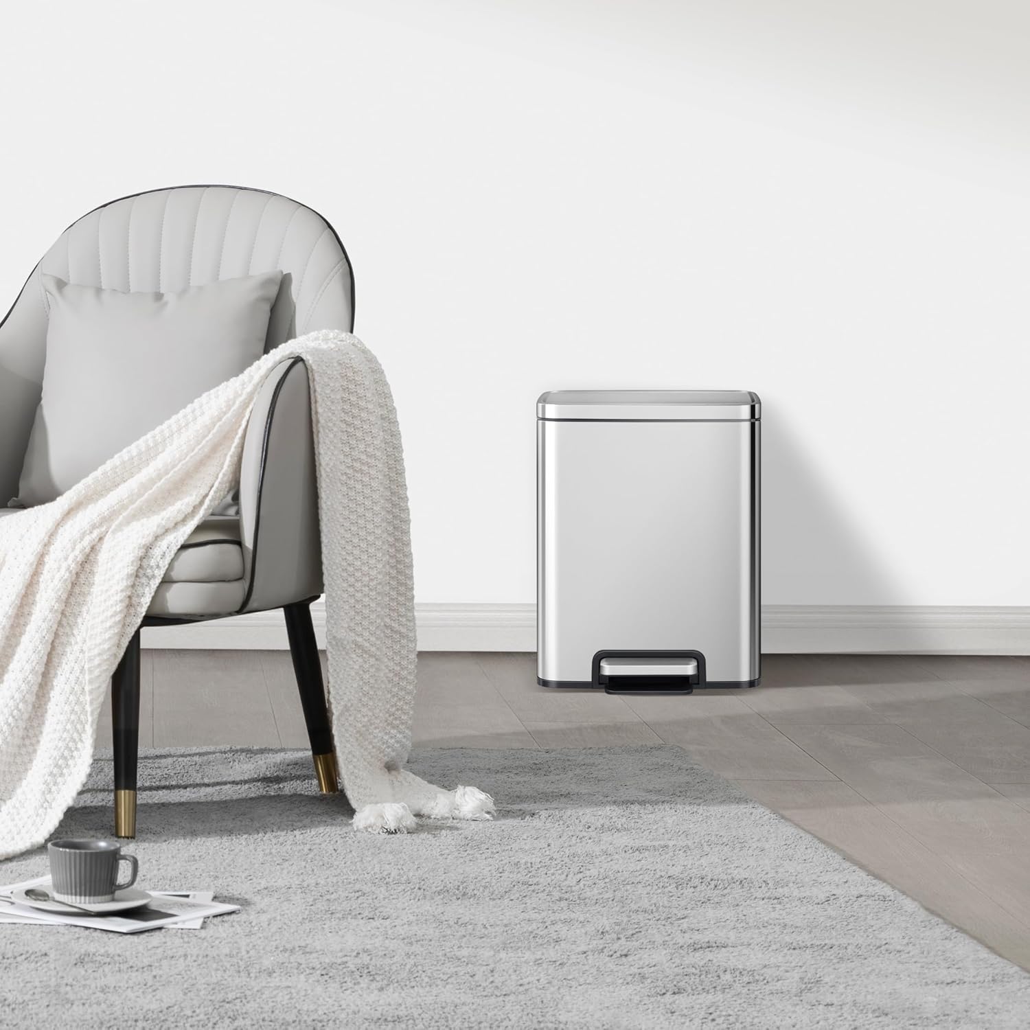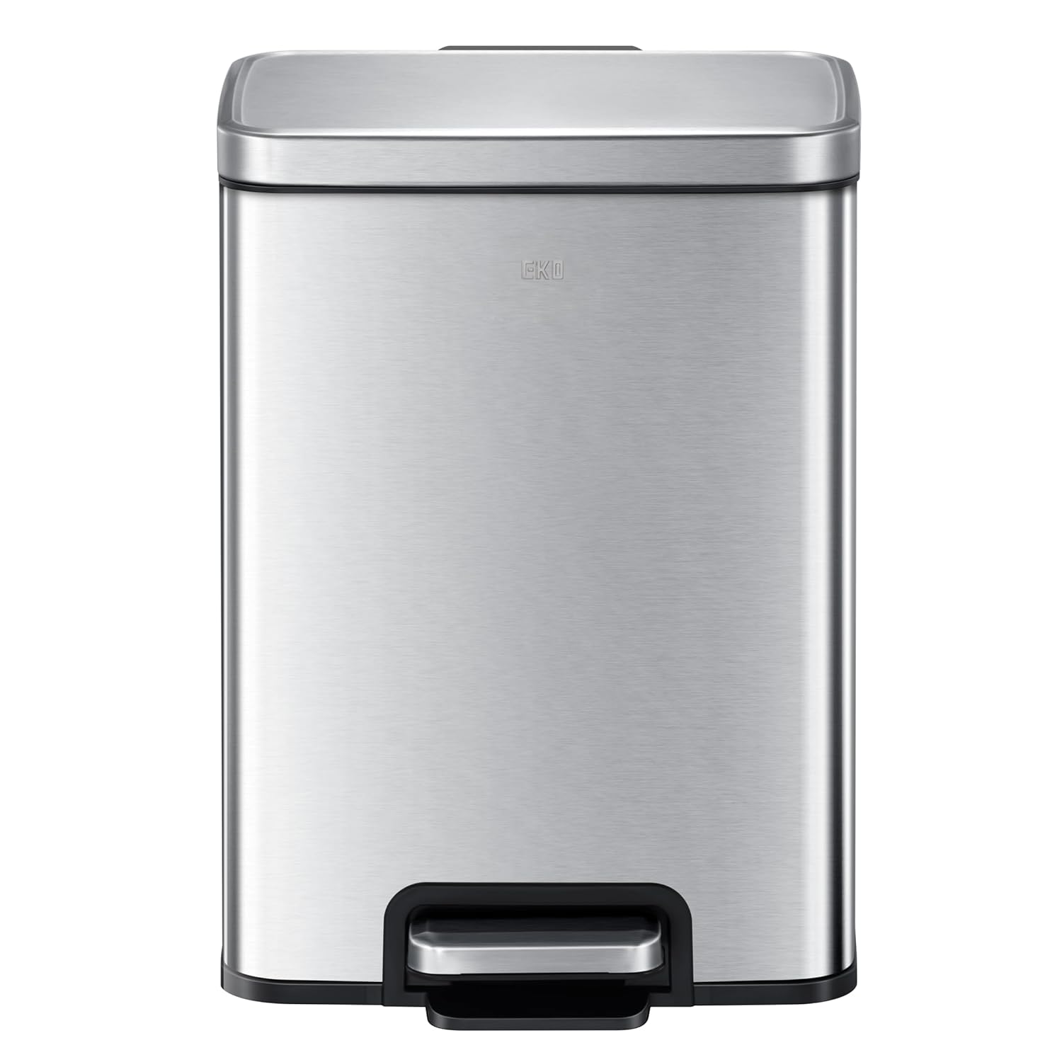 EKO Madison 12L / 3.2 Gal Bathroom Trash Can with Lid and Removable Inner Basket, Rectangular Small Step Trash Can, Brushed Stainless Steel