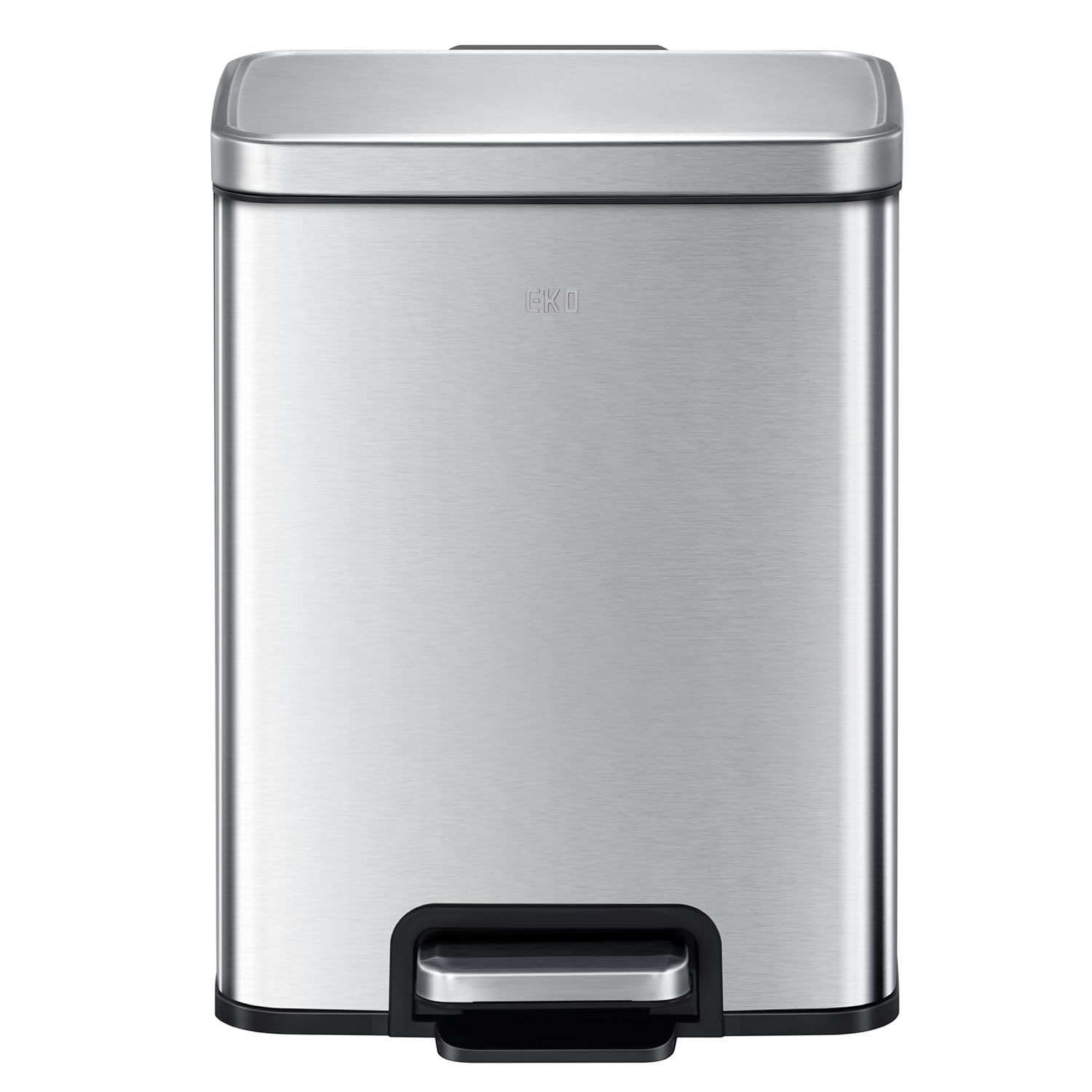 EKO Madison 6L / 1.6 Gal Bathroom Trash Can with Lid and Removable Inner Basket, Rectangular Small Step Trash Can, Brushed Stainless Steel