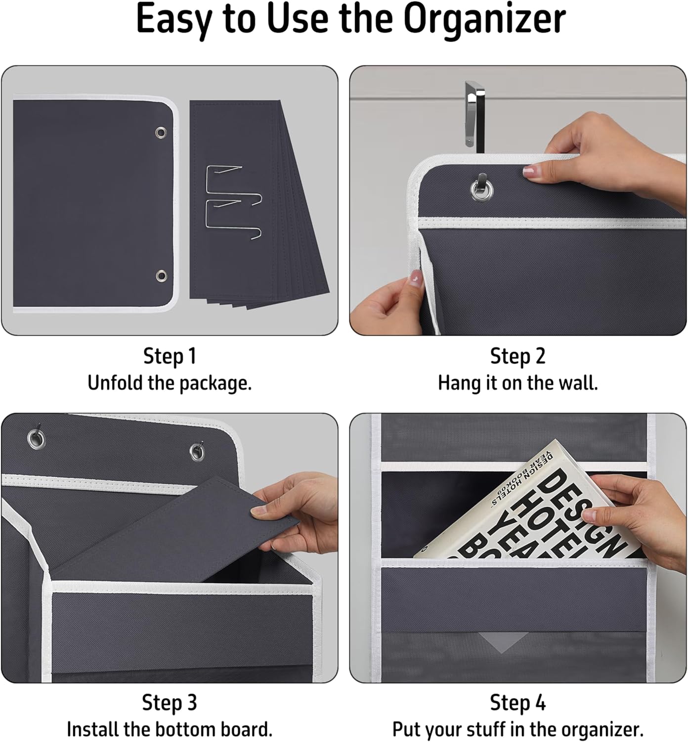 - EFFORTLESS INSTALLATION - No need for tools or hardware; simply utilize the adjustable metal hook to hang the organizer over most doors. Enjoy a hassle-free installation process that takes the stress out of organizing your space.