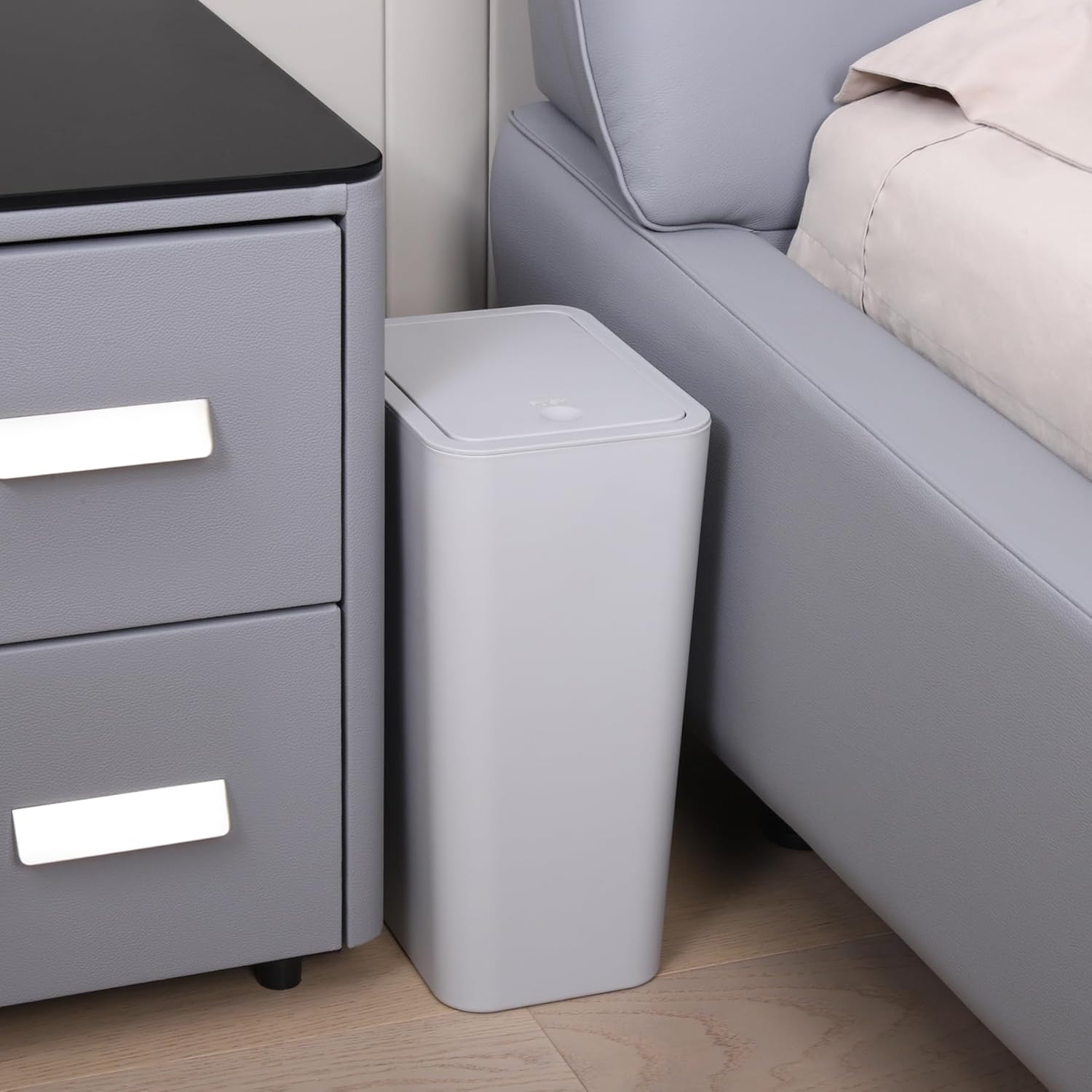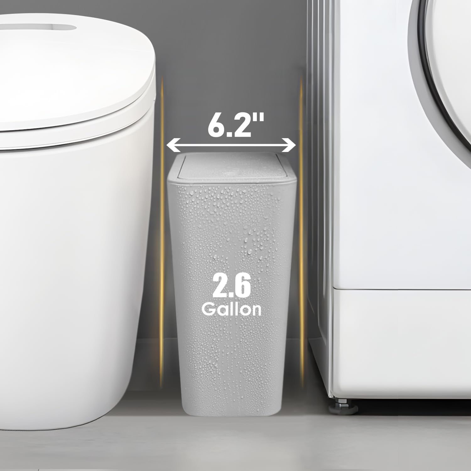 TIPGO Bathroom Trash Can with Lid, 10 Liter/ 2.6 Gallon Slim Garbage Can, Small Trash Bin Waste Basket with Pop-Up Lid for Kitchen, Bedroom, Living Room, Office (Grey)