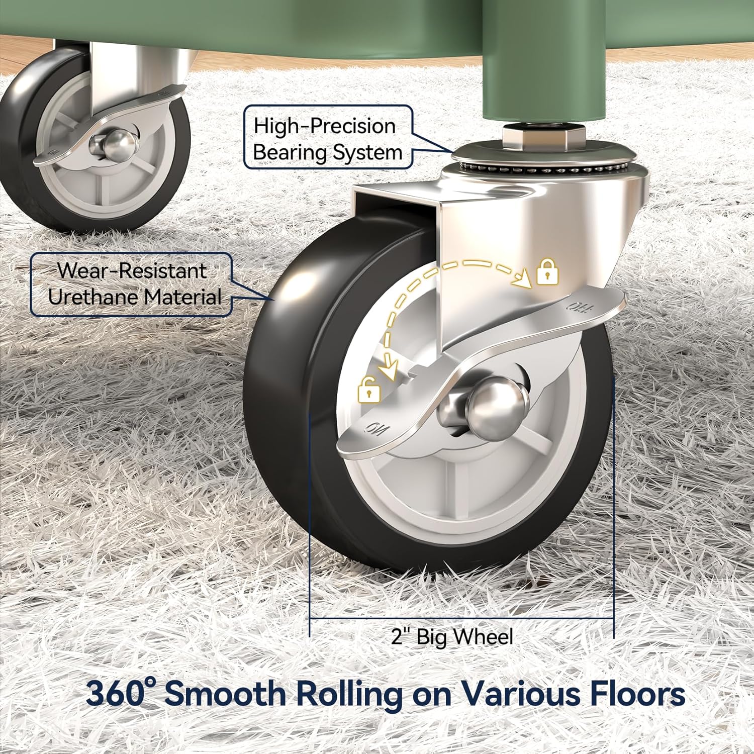 • Effortless Movement, Stable Under Heavy Loads: A solid and finely engineered structure paired with large, premium heavy-duty wheels ensure this metal rolling cart with wheels glides smoothly and stays steady even when loaded with heavy items