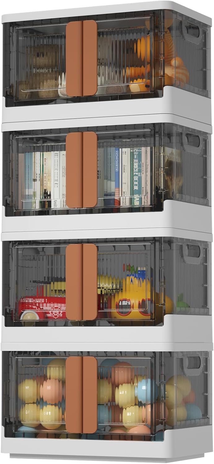 HAIXIN Plastic Storage Containers, Stackable Closet Organizers and Storage, Folding Bookshelf for Bedroom, 8.4 Gal Collapsible Laundry Organizer, 4 Pack