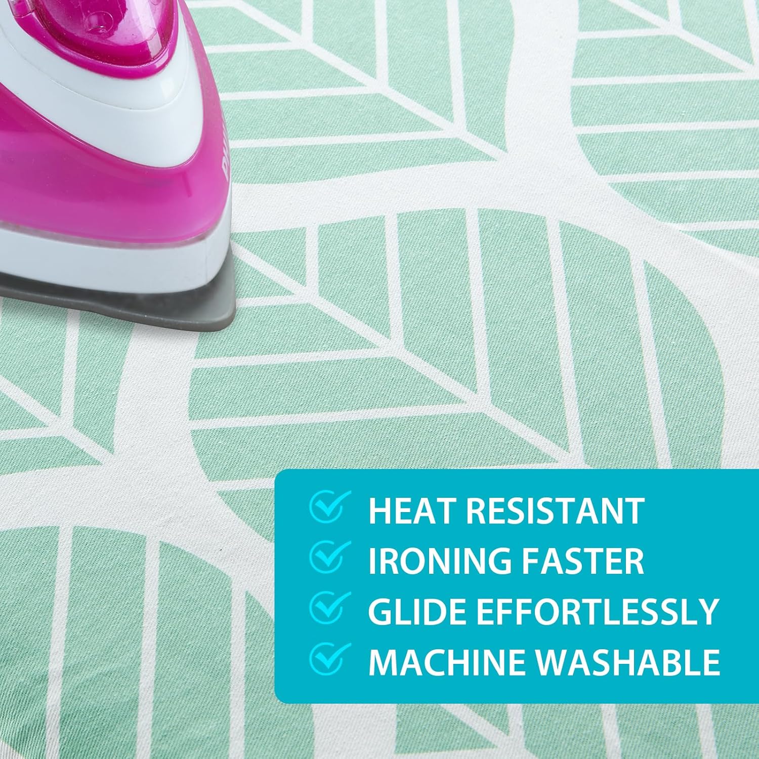 • SECURE ON YOUR IRONING BOARD TIGHTLY: The unique double non slip nose bag simplifies installation and secures it firmly in place. The elastic edge can tighten and straighten the ironing board cover to ensure that it is not easy to move or slide