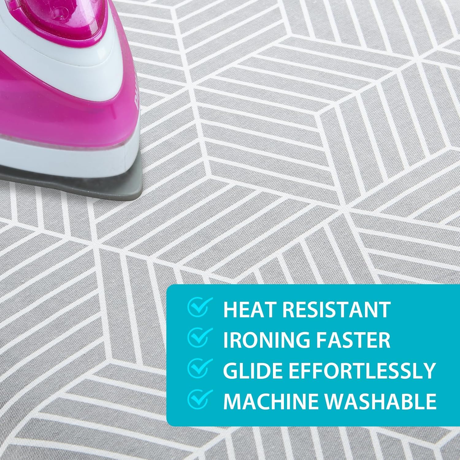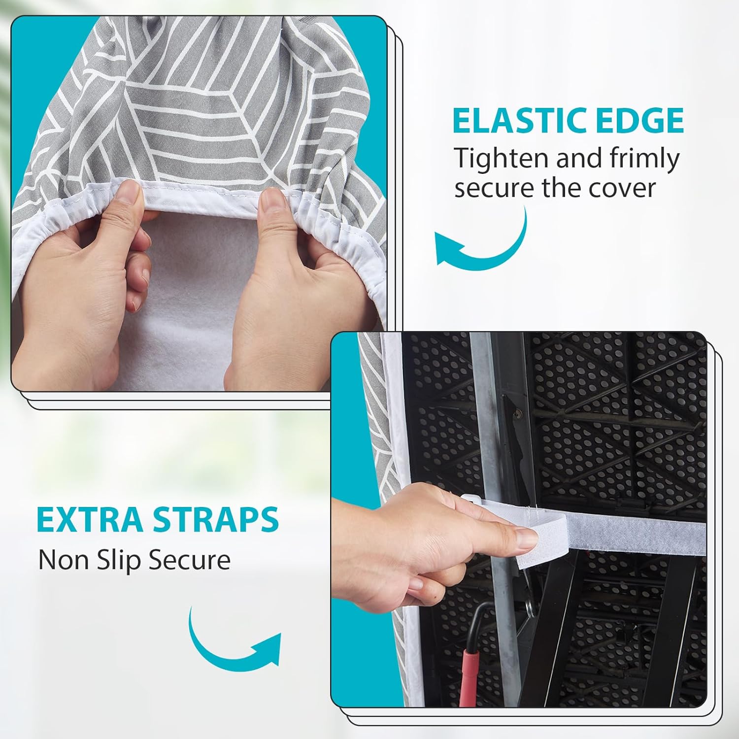• SECURE ON YOUR IRONING BOARD TIGHTLY: The unique double non slip nose bag simplifies installation and secures it firmly in place. The elastic edge can tighten and straighten the ironing board cover to ensure that it is not easy to move or slide