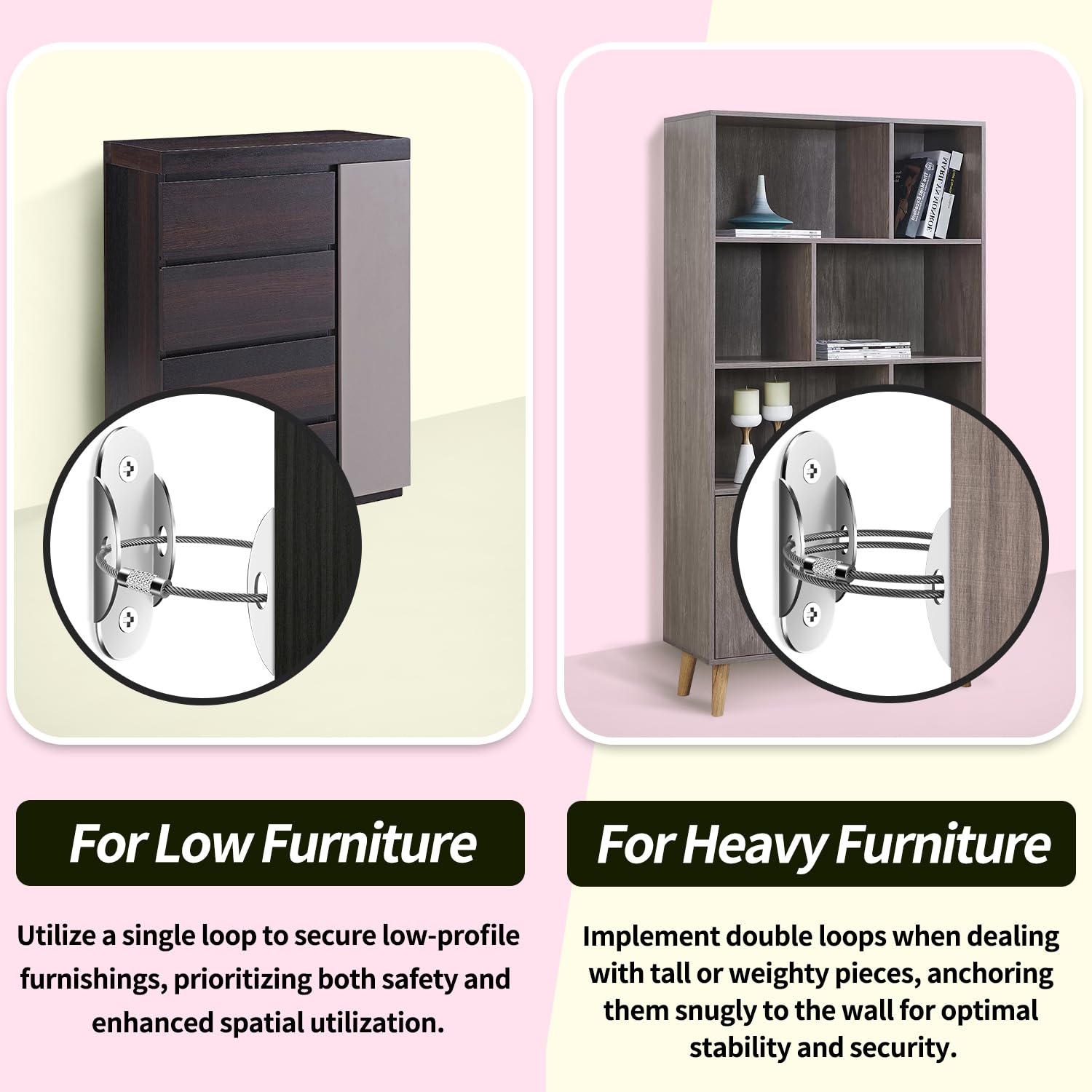 - Versatile Protection: Safeguard your space by anchoring furniture items such as bookcases, dressers, cabinets and wardrobes to the wall, effectively reducing incidents with curious toddlers. The detachable anti-tip anchor offers flexibility, allowing easy removal for cleaning or furniture repositioning.