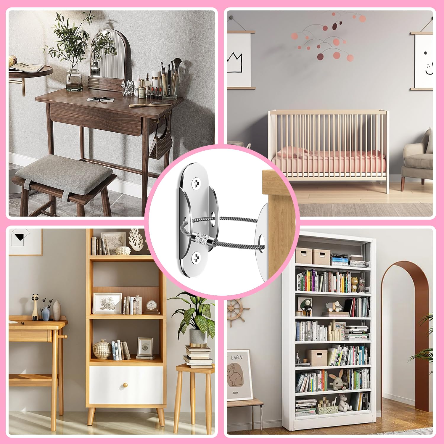 - Premium Material: Crafted from high-quality stainless steel, our baby-proof furniture anchors offer exceptional corrosion resistance and long-lasting defense against rust. Resilient against fire and heat, these anchors surpass plastic alternatives in durability, making them the ultimate guardian for your baby's safety.