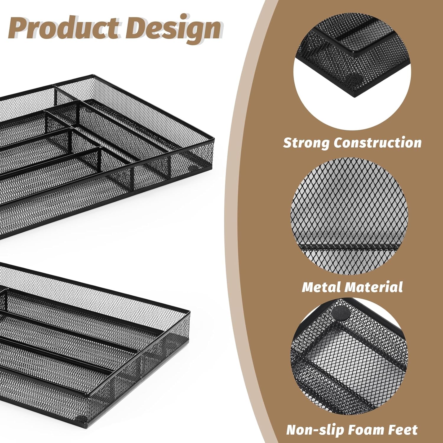 • Non-Slip Foam Feet: Keep the Tray From Sliding Around When You Open or Close the Drawer. The Extra Height on the Bottom that Avoids Your Cutlery Touch to the Desktop.