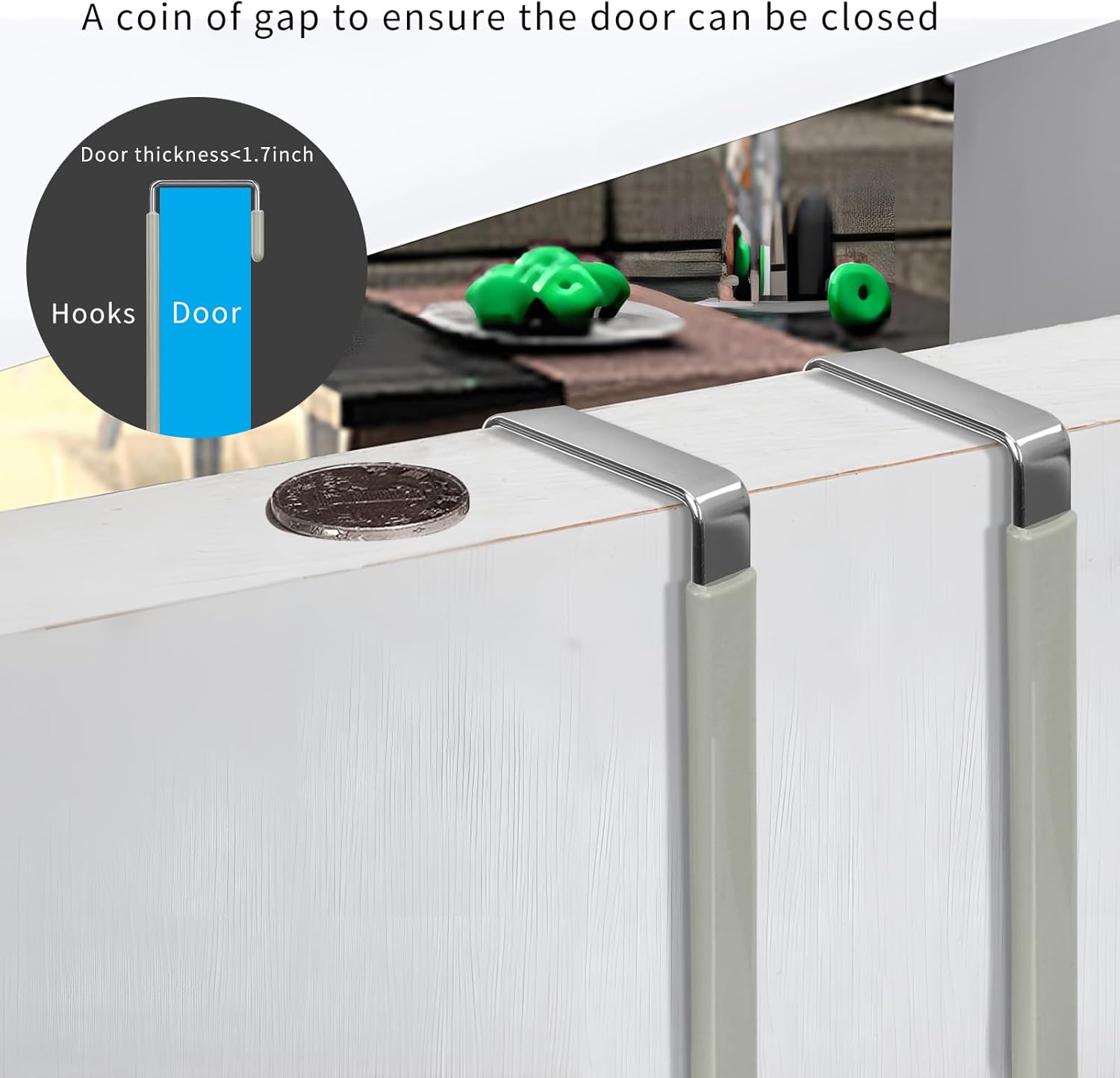 • Soft Rubber: The door organizer hooks are built with soft rubber, non-slip and smooth surface keep the hooks in place without swinging and protect the doors or clothing from scratch