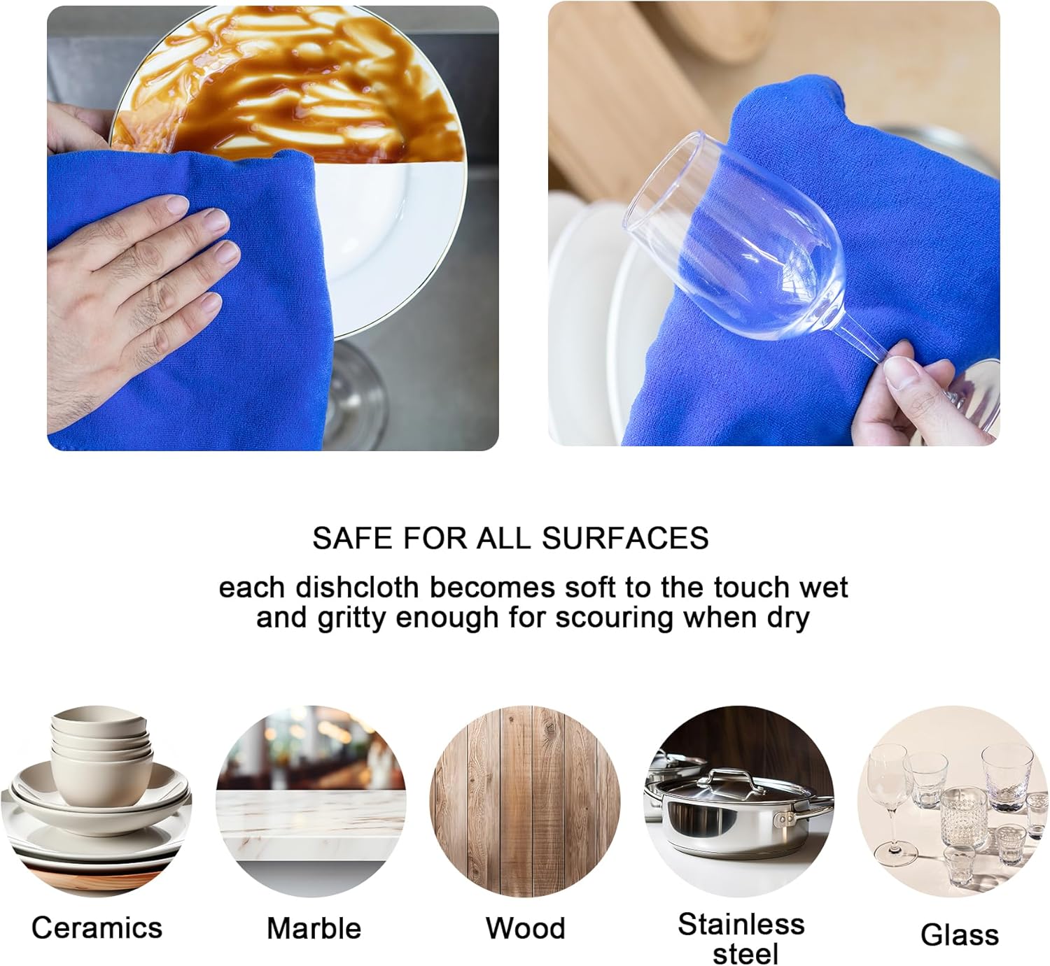 • HIGH QUALITY MATERIAL - Our dish rags are made of high quality non-abrasive and extra soft coral velvet thickening material, which is not easy to lint and fade, soft and not hurting hands, natural and without any chemicals. These dish cloths are not only suitable for kitchen cleaning, but also suitable for cleaning home furniture, car, window, electric appliance etc. It’s so easy to remove dust, dirt, stain, grease, fingerprints.