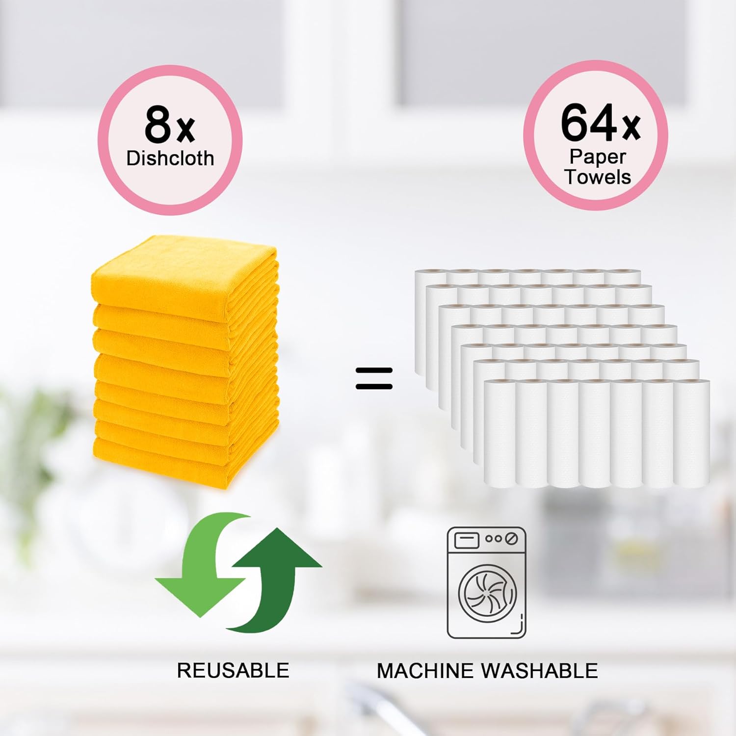 • COUNTLESS USES - Due to being highly absorbent, these microfiber dish towels are great for dust cloths, drying hands, wiping stains, cleaning windows, as well as cheese strainers, salad spinners, a wide variety of household chores. As good as having a magic wand in your hands! Get the job done quickly in a right way with our dish cloths!