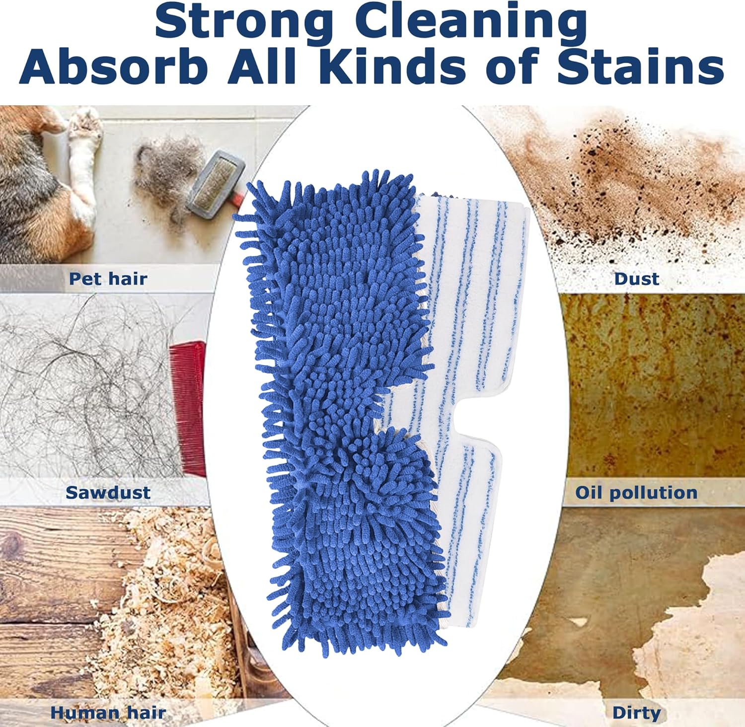 • Material: One side is chenille for dry dusting and cleaning, and the other side is microfiber-faced polyester which is suitable for deep cleaning stains and dust in any area. It has strong water absorption and hair stains are not easy to fall off