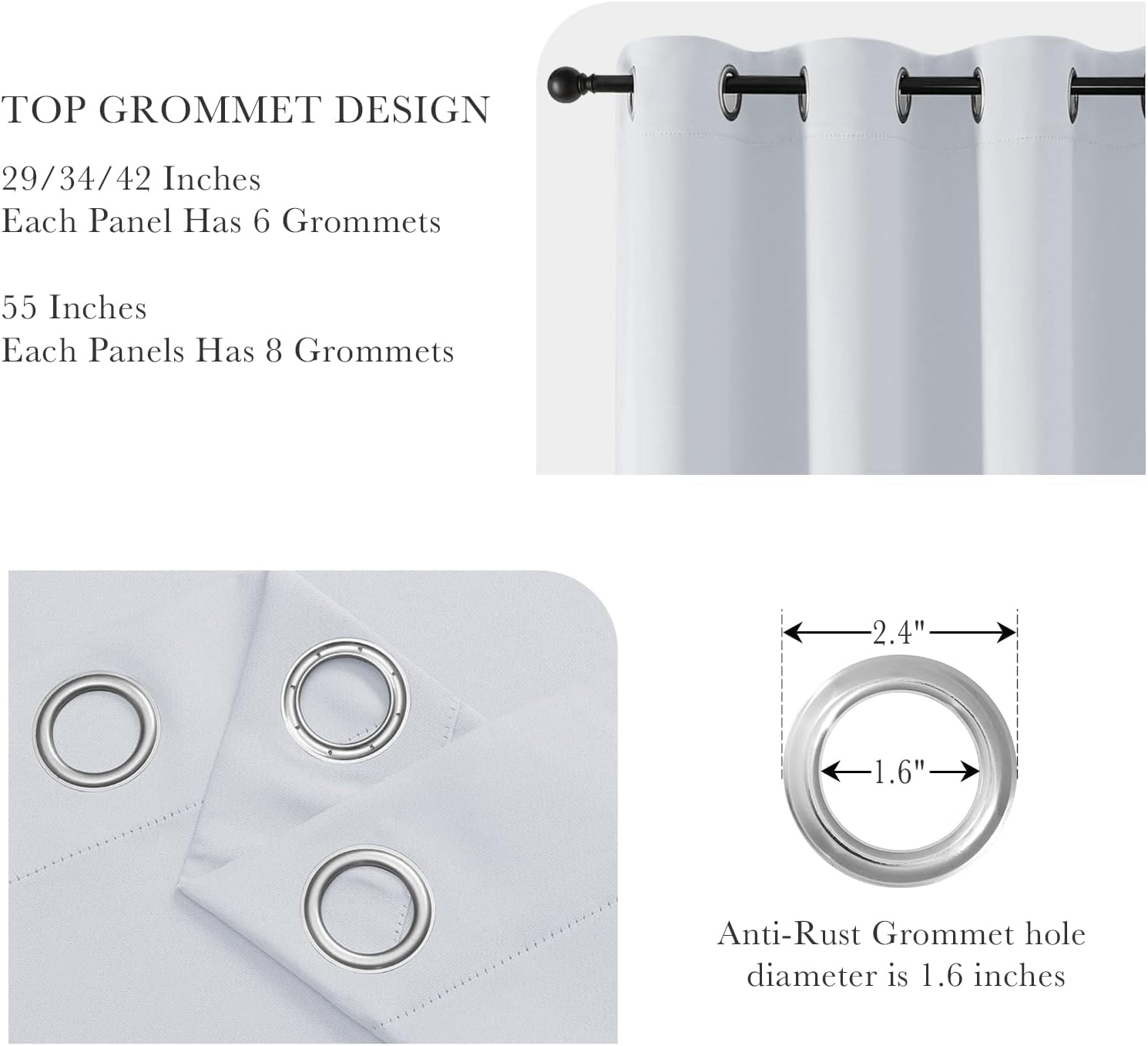 • READY MADE - 2 panels include, each measures W29" x L24", 6 silver grommets(1.6" inner diameter) fit most standard rods. For proper fullness, panels should measure 1.5-2.6 times the width of your window