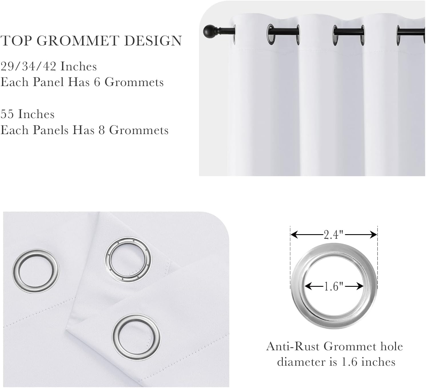 • READY MADE - 2 panels include, each measures W34" x L24", 6 silver grommets(1.6" inner diameter) fit most standard rods. For proper fullness, panels should measure 1.5-2.6 times the width of your window