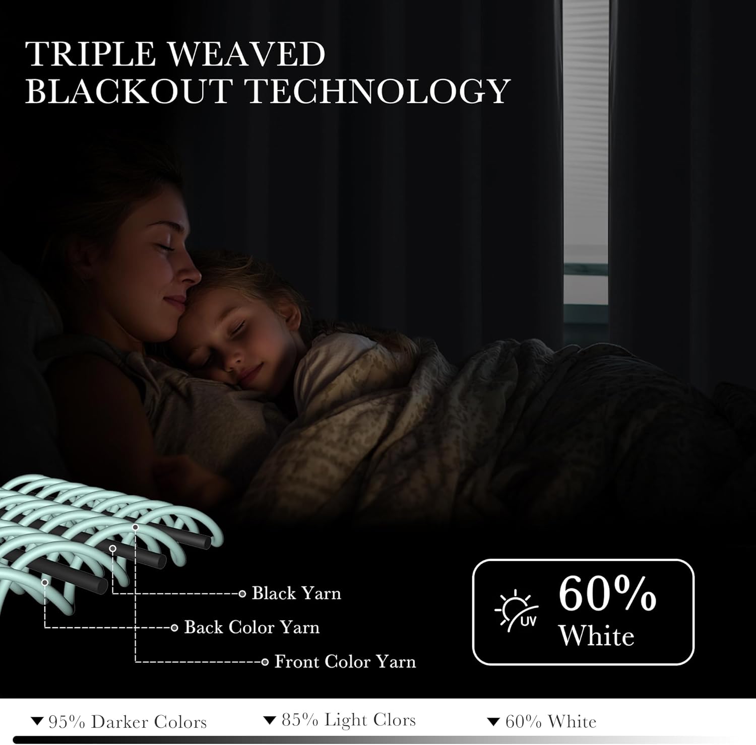 • LIGHT CONTROL - Adopt the triple weave technology, the heavy and soft fabric can prevent harsh sunlight and UV ray from passing through the windows. Dark color works better than the light one