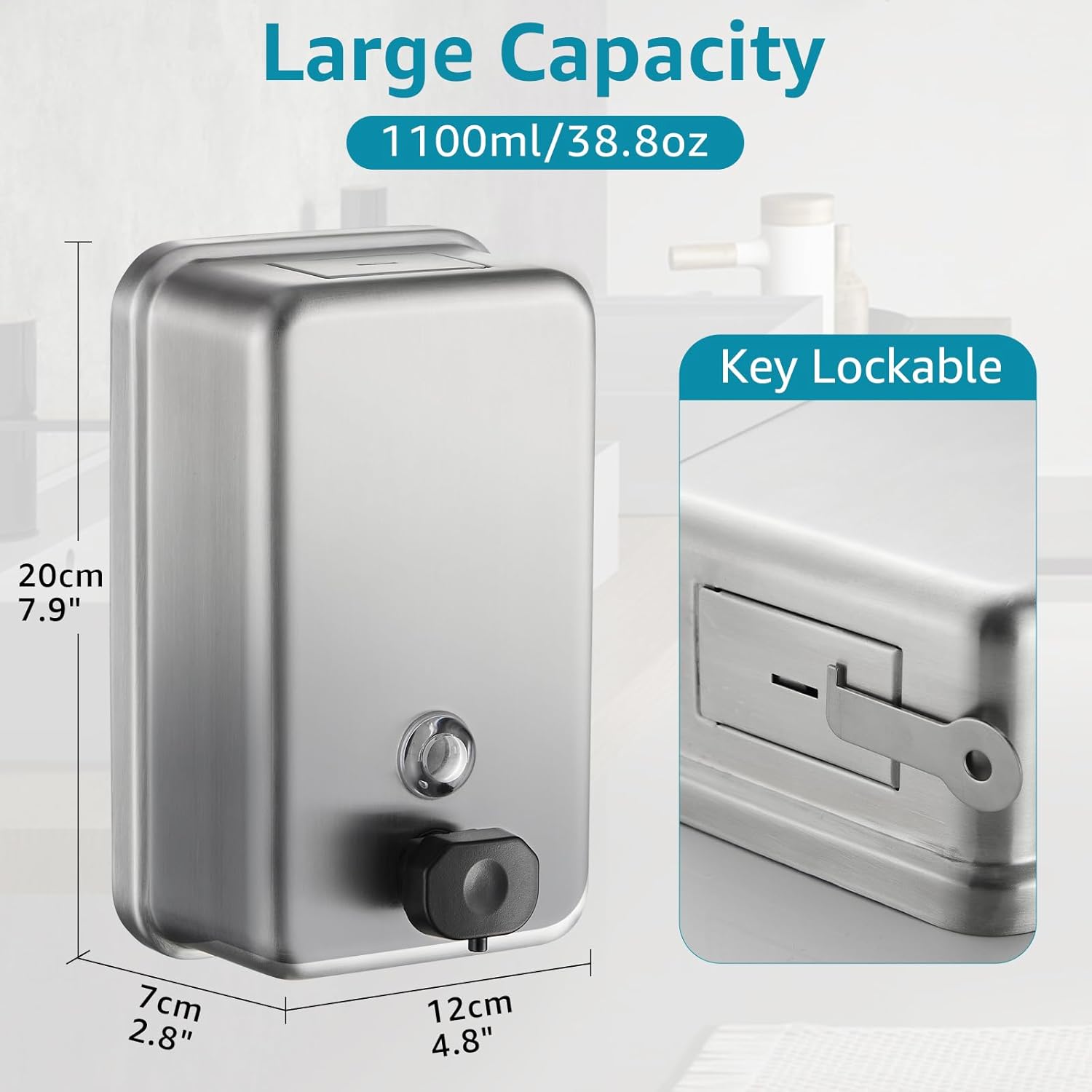 • Easy to Mount&Use: The soap dispenser supports drill in wall mount, comes with mounting parts. Design for public commercial areas, stable and practical to use, you could also use it in kitchen, bathroom and restroom, an elegant and industrial-style decor. Liquid/gel and lotion soaps liquid are applicable.