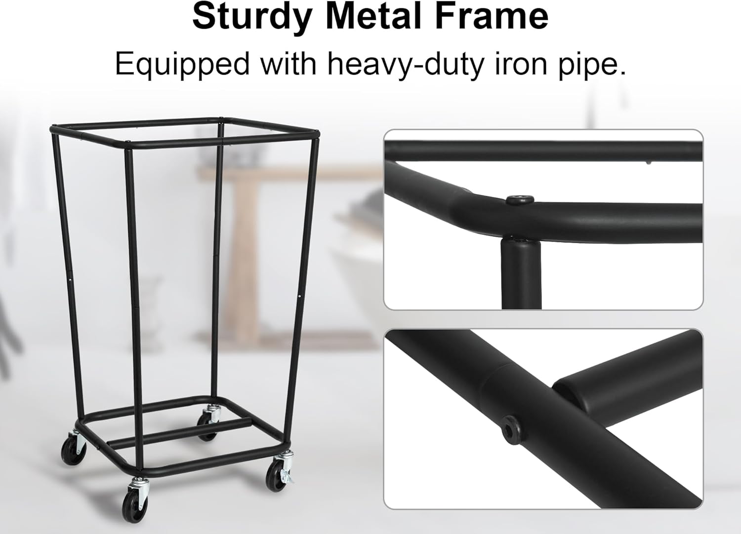 • The laundry hamper comes with four 3-inch casters, including two with brakes, ensuring effortless maneuverability as you transport it to the laundry room and stability when locked in place.