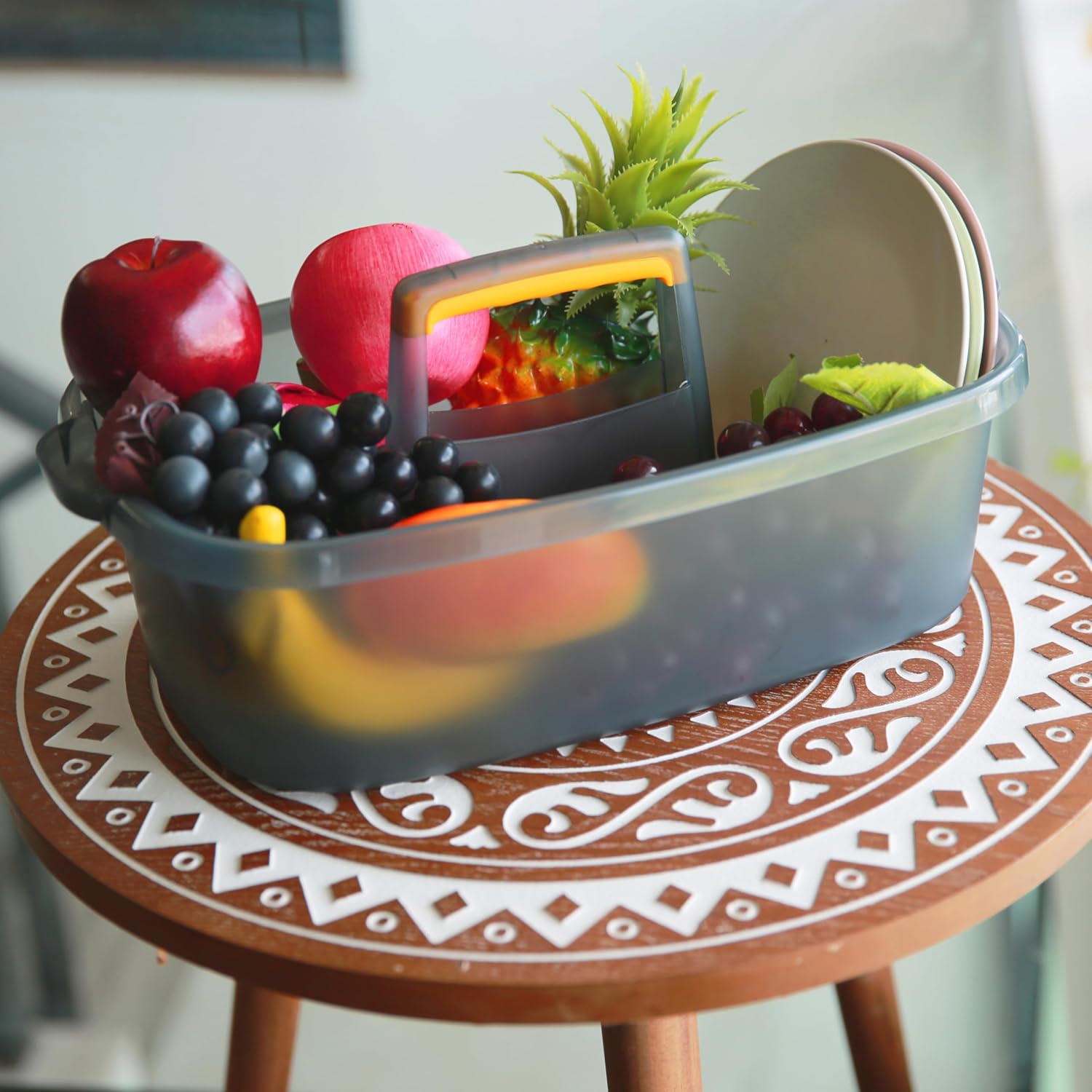 Cleaning Caddy Organizer with Handle, Storage Basket/Totes Portable for Bathroom Supplies, Cleaning Products, and Sink Tool.(Translucent Gray×2, 2 Pack)