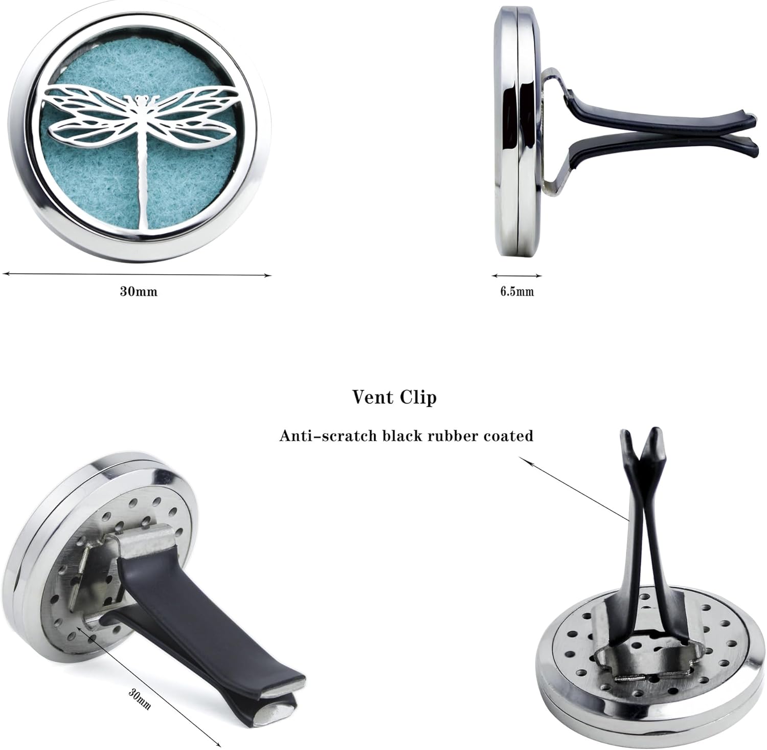 • 【Material 】high quality 316L stainless steel 30mm Car Diffuser Vent Clip, solid and smooth, anti-corrosion, easy to clean, we pair our diffuser car vent with reusable 10 color refill pads. Complete with a solid back and two magnets for a secure close, you’ll never have to worry about getting essential Oil all over your car.