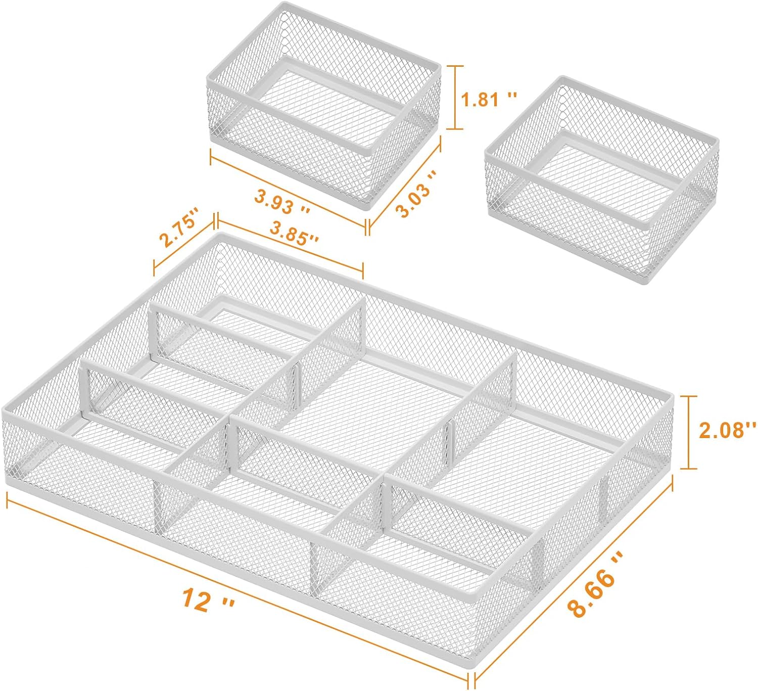 • 【Stury and Durable】Made of sturdy black wire mesh structure with powder coated surface, smooth and corrosion-resistant. Non-slip feet can keep the product stable.Big Drawer:12*8.3*2.2inches;2PC Small Drawers:3.5*3*1.9inches