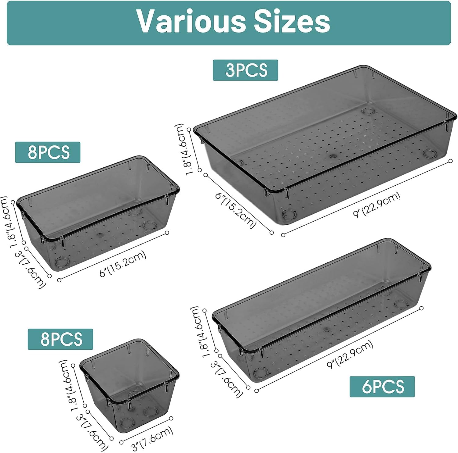 • Premium Material:The drawer organizer is made of non-toxic plastic which may be safely used. The transparent design makes it easy to find what you need quickly