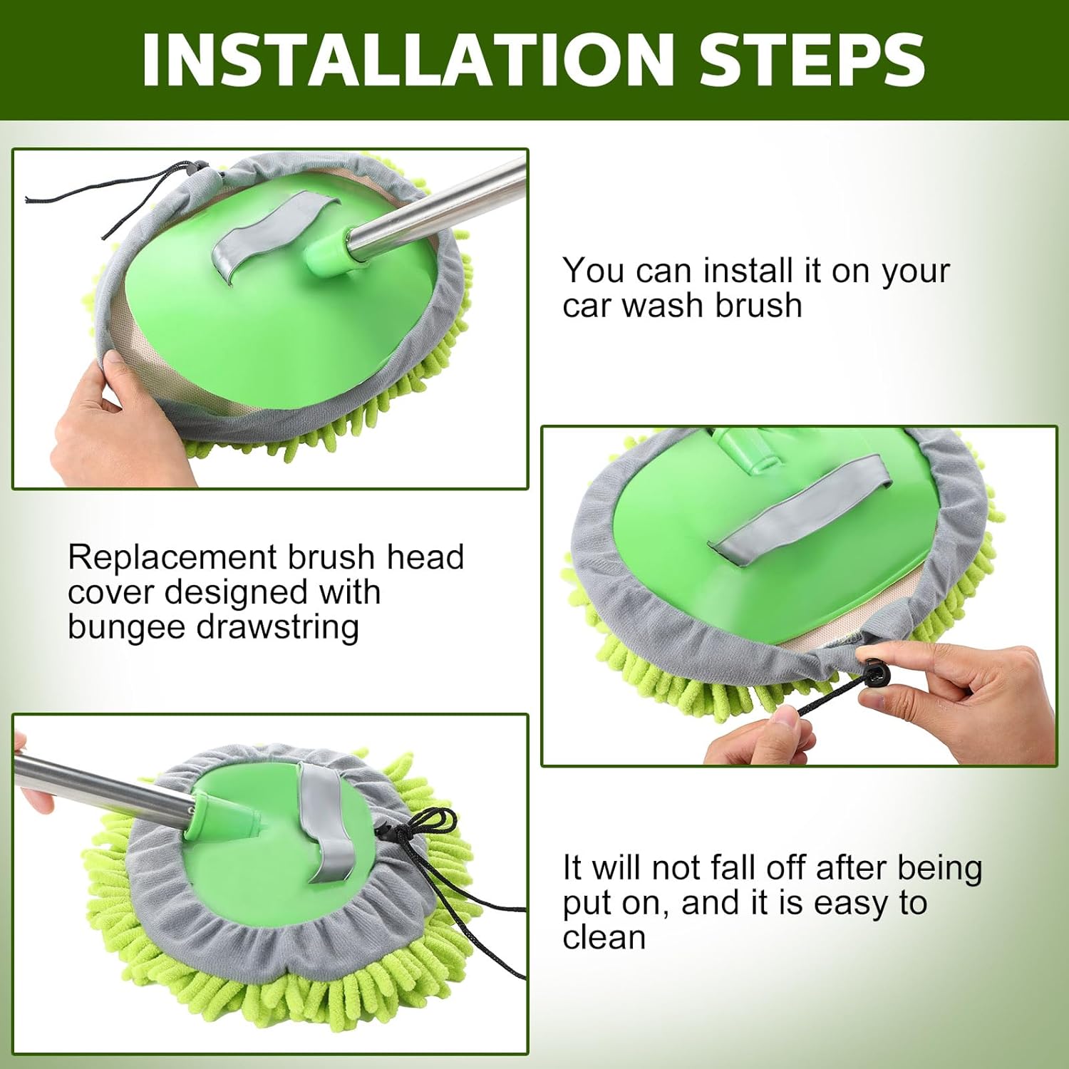 • Efficient Car Cleaning Solution: keep your car's finish looking nice with our microfiber car wash brush; The chenille scratch proof replacement heads securely attach to your mop handle to effectively but gently clean off dirt, dust, and debris from your vehicle's surface, preserving your car's paintwork