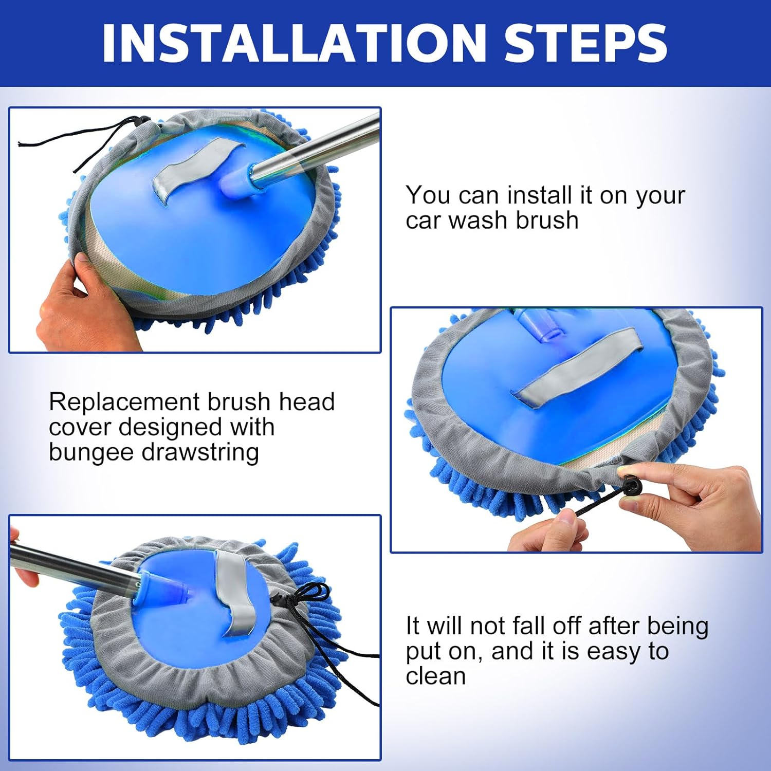 • Efficient Car Cleaning Solution: keep your car's finish looking nice with our microfiber car wash brush; The chenille scratch proof replacement heads securely attach to your mop handle to effectively but gently clean off dirt, dust, and debris from your vehicle's surface, preserving your car's paintwork