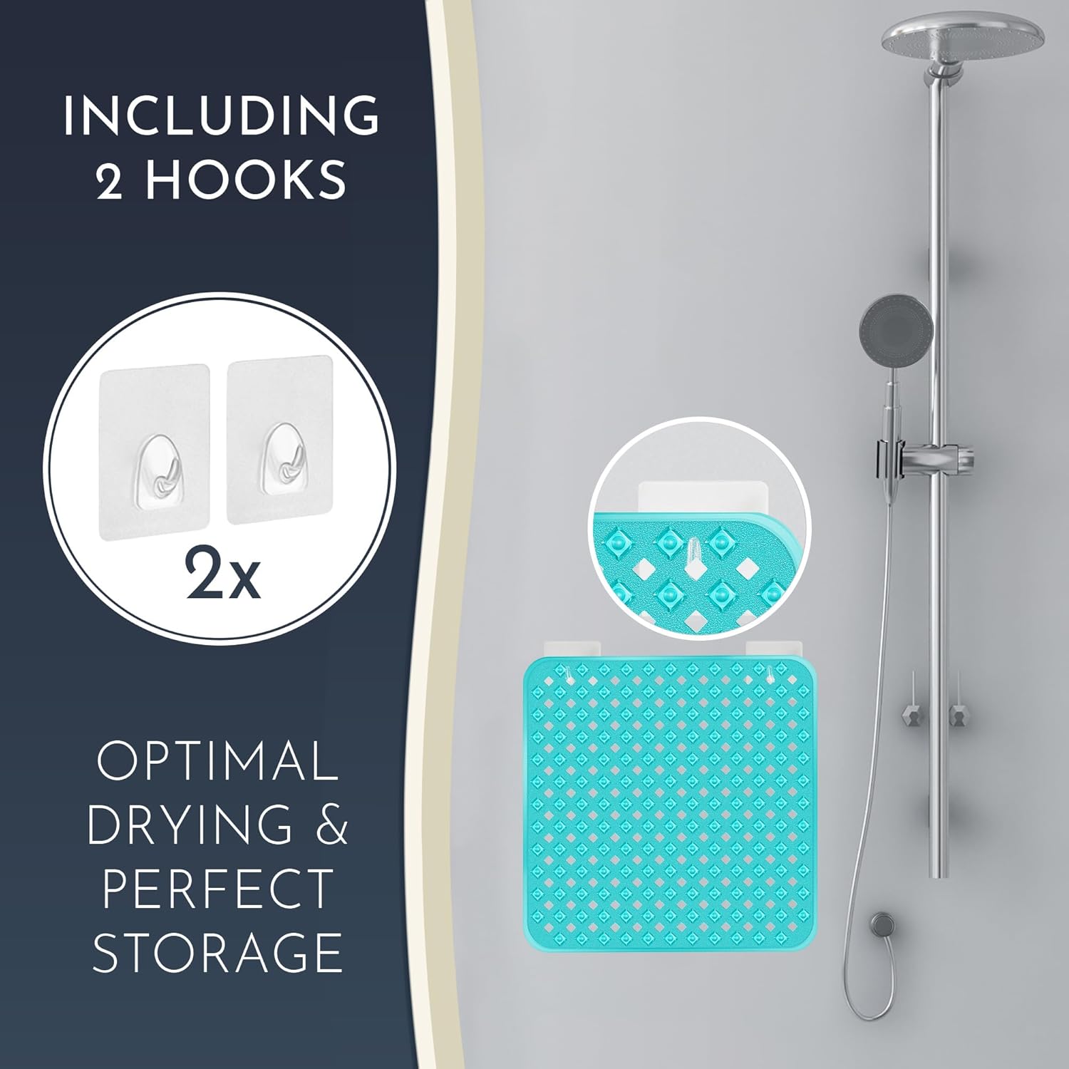 Homerella Anti Slip Shower Mat | Anti Mold Non Slip Bathtub Mat for Inside Shower | Square Floor Shower Mat 21 x 21 inch with Suction Cups for Grip & Hooks Hanging and Quick Drying | Machine Washable