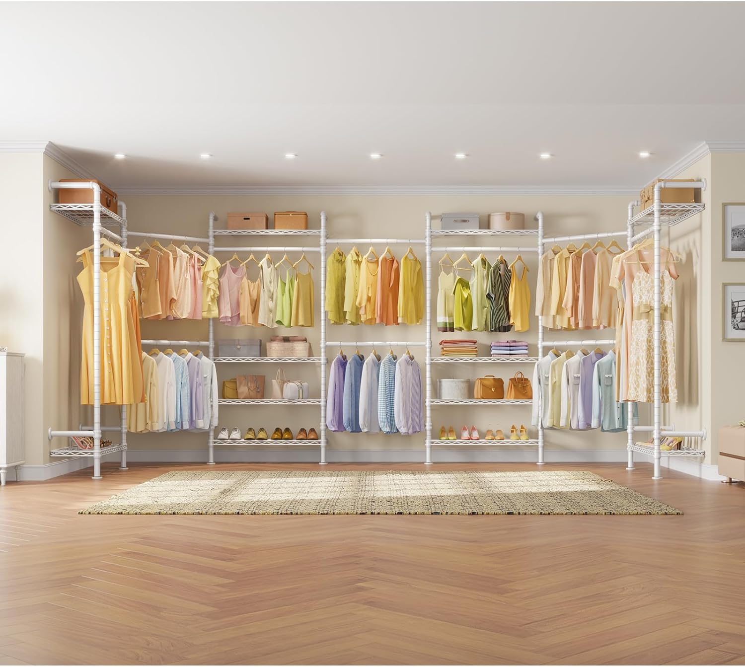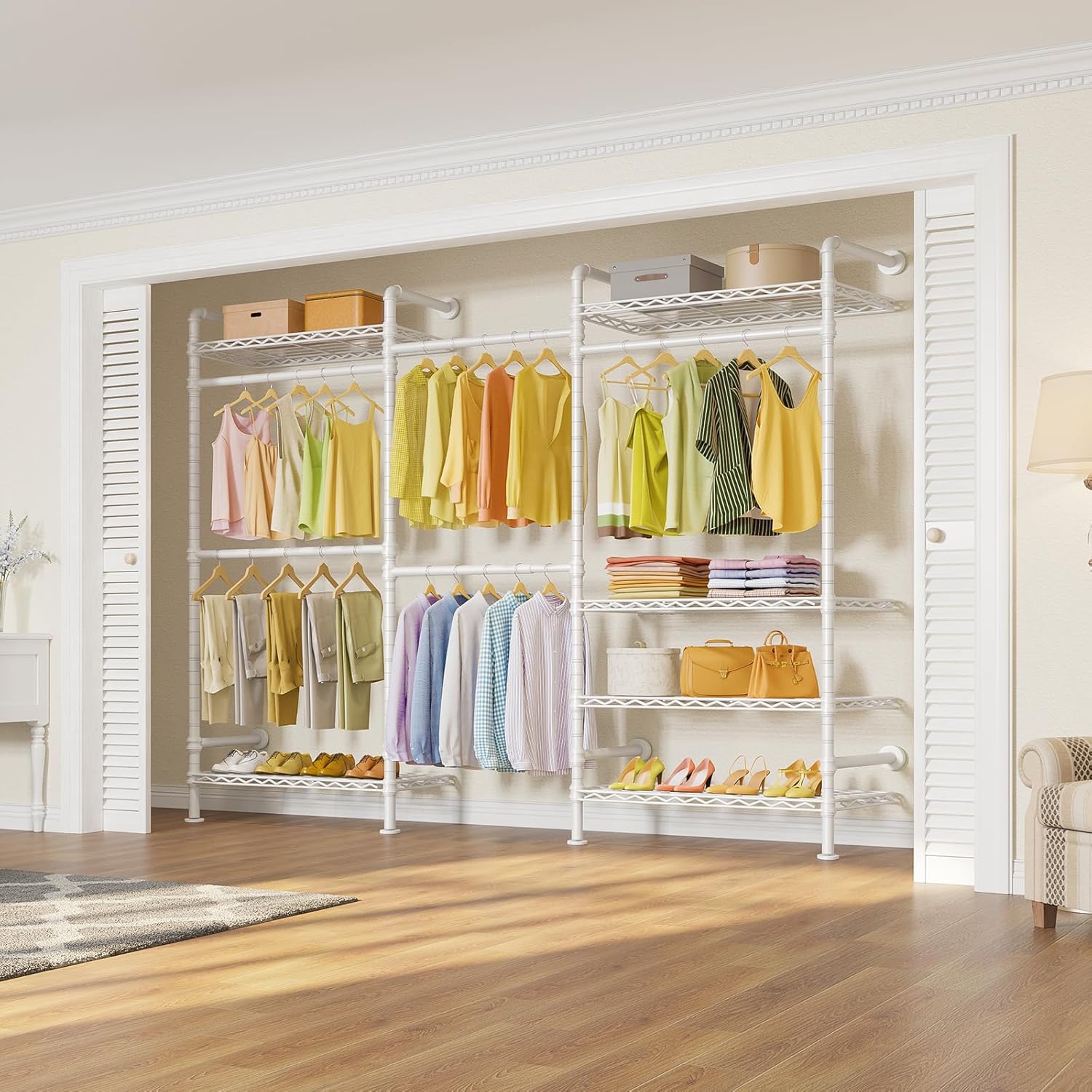 Timate F3 Garment Rack Heavy Duty Clothes Rack for Hanging Clothes, Expandable Industrial Pipe Wall Mounted Clothing Rack, Adjustable Storage Closet Wardrobe Closet Kit Walk in Closet Systems, White