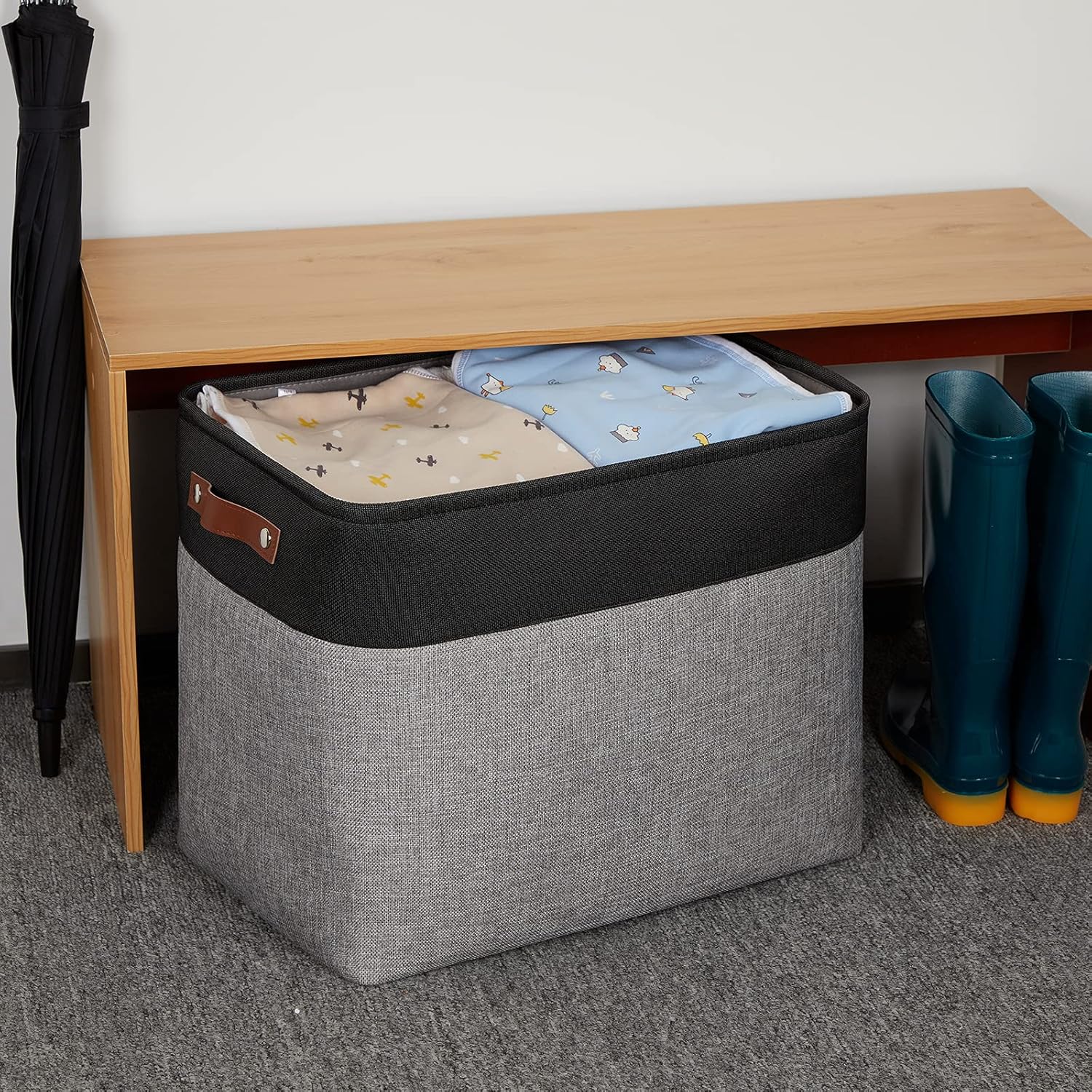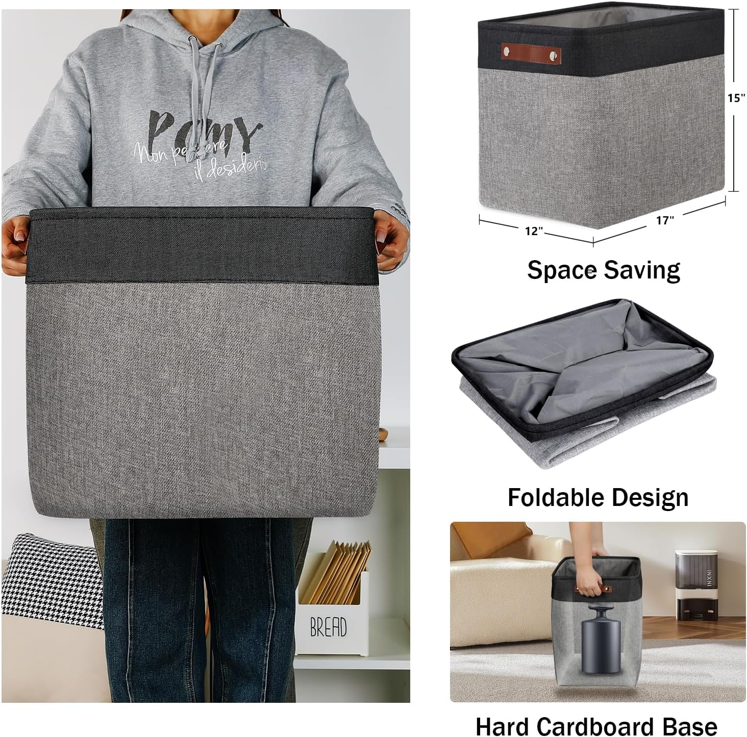 • 【Unique Design & Modern & Decorative】Set of 2 large storage baskets, dimensions(each): 17(L) x 12(W) x 15(H) inches. Collapsible storage baskets bring you organizing convenience and a sweet home. Great for socks, underwear, books, magazines, toys, baby clothes, pet products, wipes, towels, decorations, office supplies, DVDs, and gifts. The fabric baskets with neutral colors can match a lot of home styles - keeping your home nice and tidy.