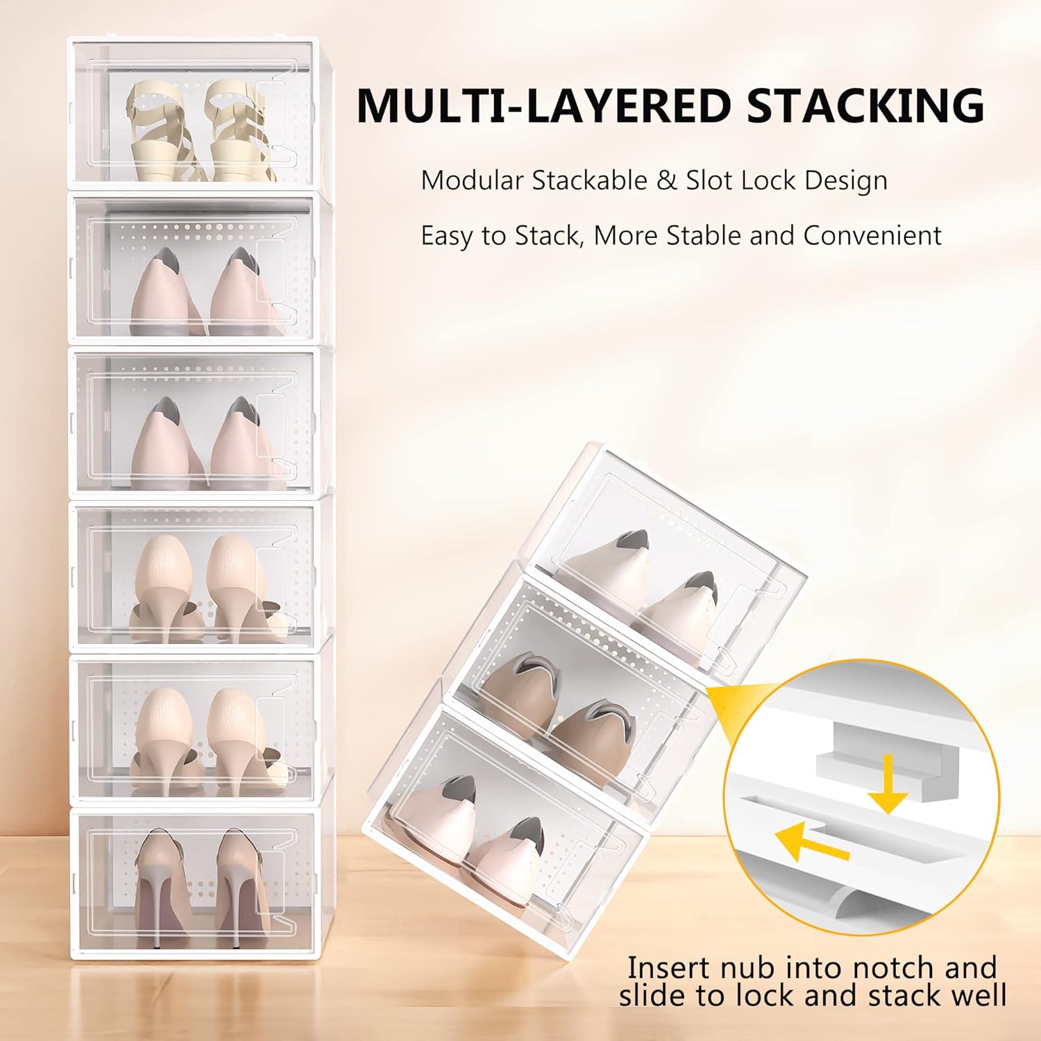 • Clear Shoe Manager: Clear shoe boxes stackable helps you search for your shoes quickly and efficiently, and ventilation design allows air circulation and odor prevention. Limited space saving fit for in the closet, wardrobe, hallway, entryway, bedroom, under bed and so on.