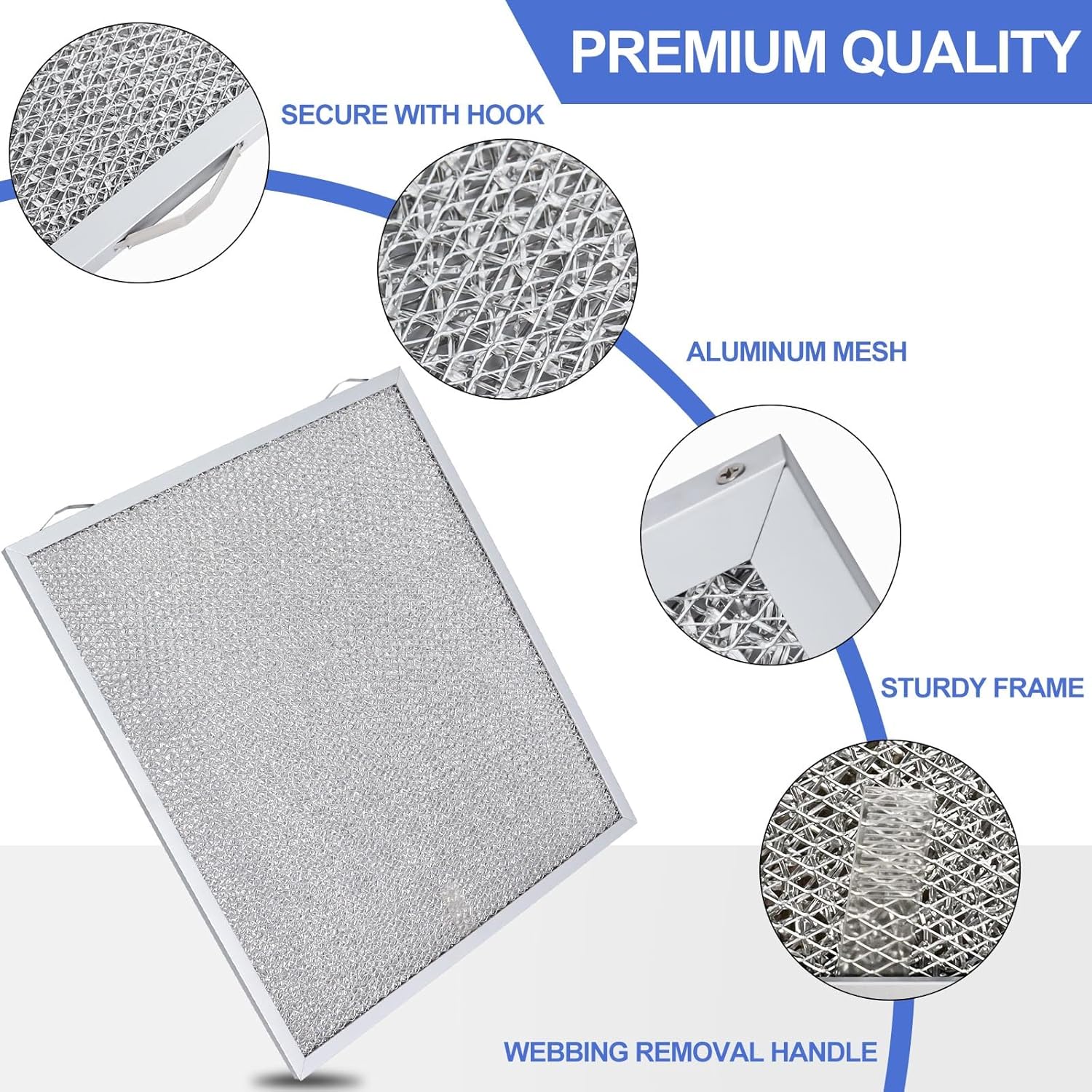 - Excellent Function: The vent range hood grease filter is made of a premium-grade, strong and long lasting aluminum alloy filter mesh and stainless steel frame. It is resistant to rust, ensuring long-lasting performance. The filter effectively traps and removes grease and mist from the exhaust air, maintaining a cleaner kitchen environment.